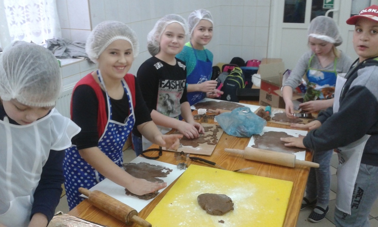Klasa IV "pod okiem" pani Marty Dominik - swojego wychowawcy, z werwą wzięła się do pracy i z wielkim zapałem przygotowała zapas pierników dla całej klasy !!! Dziewczynki i chłopcy zakasali rękawy, włożyli czepki, fartuszki no i wałki poszły w ruch ! Wałkowali, wycinali, podsypywali ... aby stworzyć jak najładniejsze, jak najsmaczniejsze pierniki. Piękny zapach zwabił uczniów z całej szkoły, a efekt był zaskakująco "pyszny" :-)