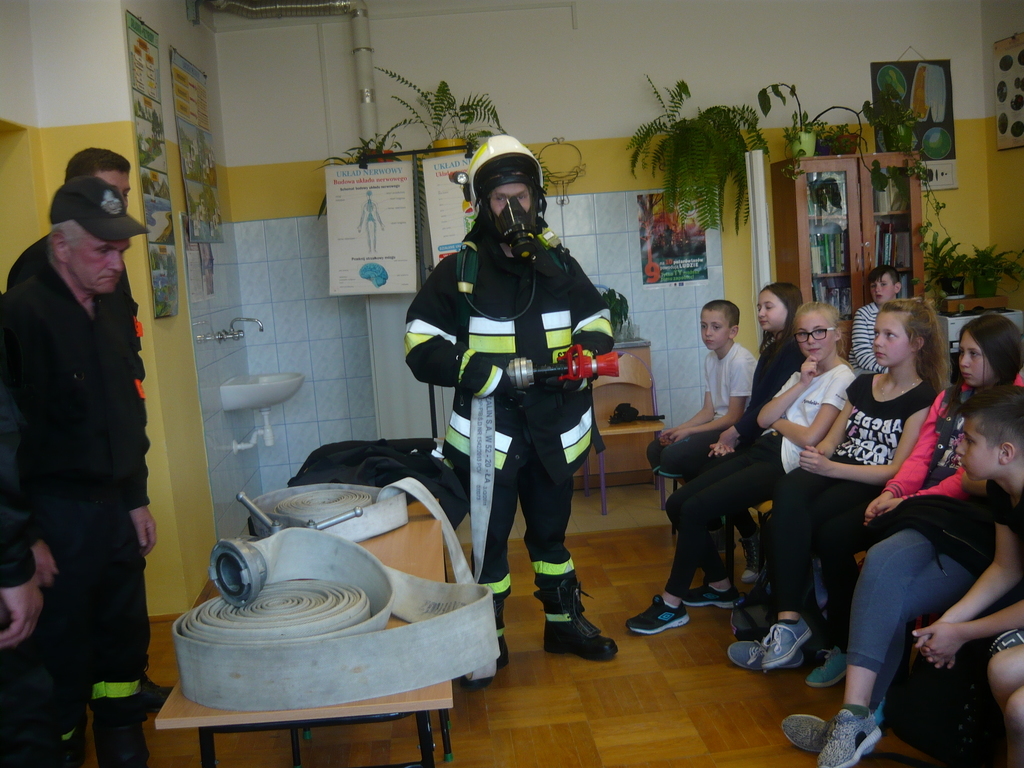 Pan Dariusz Wyczawski opowiedział uczniom o akcjach przeprowadzanych przez strażaków oraz przypomniał , jak należy zachowywać się w sytuacjach zagrożenia pożarowego. W spotkaniu uczestniczyło jeszcze 5 strażaków: pan Wiesław Płachetko – sołtys naszej wsi, pan Józef Kruk – najstarszy stażem strażak z Wiązownicy oraz absolwenci naszej szkoły- młodzi strażacy: Karol Bieszczad, Jacek Kolasa i Ryszard Kruk.