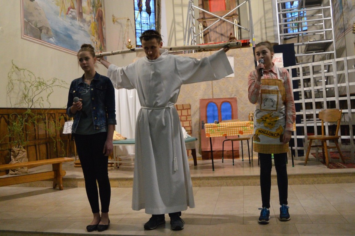 W dniu 7 kwietnia w Kościele Parafialnym w Wiązownicy wolontariusze Szkolnego Koła Caritas wraz z innymi uczniami wystawili misterium „Oto Ja jestem z wami”, które połączone było z Drogą Krzyżową. Misterium zawierało cztery sceny odwołujące się do ludzkiego cierpienia i umiejętności łączenia go z cierpieniem Jezusa. Wszystkie sceny łączyła osoba Jezusa, który przechodził pomiędzy postaciami, aby dać nam do zrozumienia, że On jest zawsze blisko cierpiących i samotnych, nawet wtedy, gdy tego nie odczuwają. Pięknym uwieńczeniem misterium była Droga Krzyżowa ze stacją „Zmartwychwstanie”, po której uczeń grający Jezusa przekazał innym aktorom światło będące znakiem zwycięstwa życia nad śmiercią i dobra nad złem.