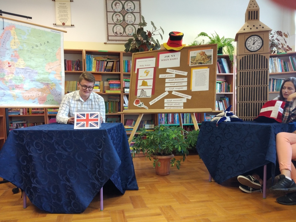 19 października 2017r. w bibliotece szkolnej odbyła się impreza czytelnicza Jak na wieży Babel…. Fragmenty książki „Mały Książę” czytane były w różnych językach przez uczniów szkoły podstawowej i gimnazjum oraz nauczycieli naszej szkoły. Zgromadzeni mogli posłuchać, jak brzmi ta znana opowieść w języku polskim, angielskim, niemieckim, włoskim, greckim, hiszpańskim, francuskim, rosyjskim, chorwackim i norweskim. Niektóre fragmenty zaprezentowali uczniowie, którzy spędzili kilka lat poza granicami naszego kraju i biegle posługują się różnymi językami. Aby wprowadzić słuchaczy w odpowiedni nastrój, przed każdym występem lektora odtwarzano piosenkę w tym samym języku.
