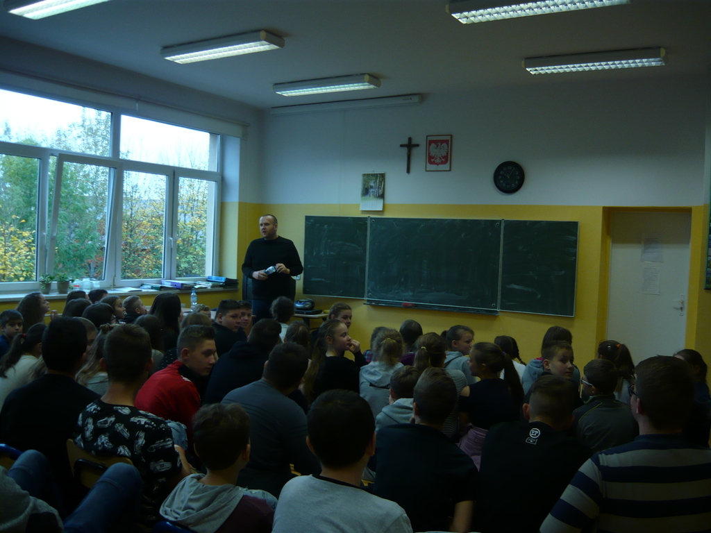 25 października 2017r. w naszej szkole odbyło się spotkanie z Panem Markiem Siuśta, wychowawcą ośrodka dla trudnej młodzieży. Nasz gość na co dzień zajmuje się chłopcami z uzależnieniami i poważnymi problemami. Spotkanie profilaktyczne odnośnie używek, uzależnień behawioralnych oraz niebezpieczeństw dzisiejszego świata wywołało wśród uczniów naszej szkoły niemałe poruszenie, a dyskusja, która później się z tego wywiązała, pokazała, że te tematy są interesujące dla dorastającej młodzieży.
