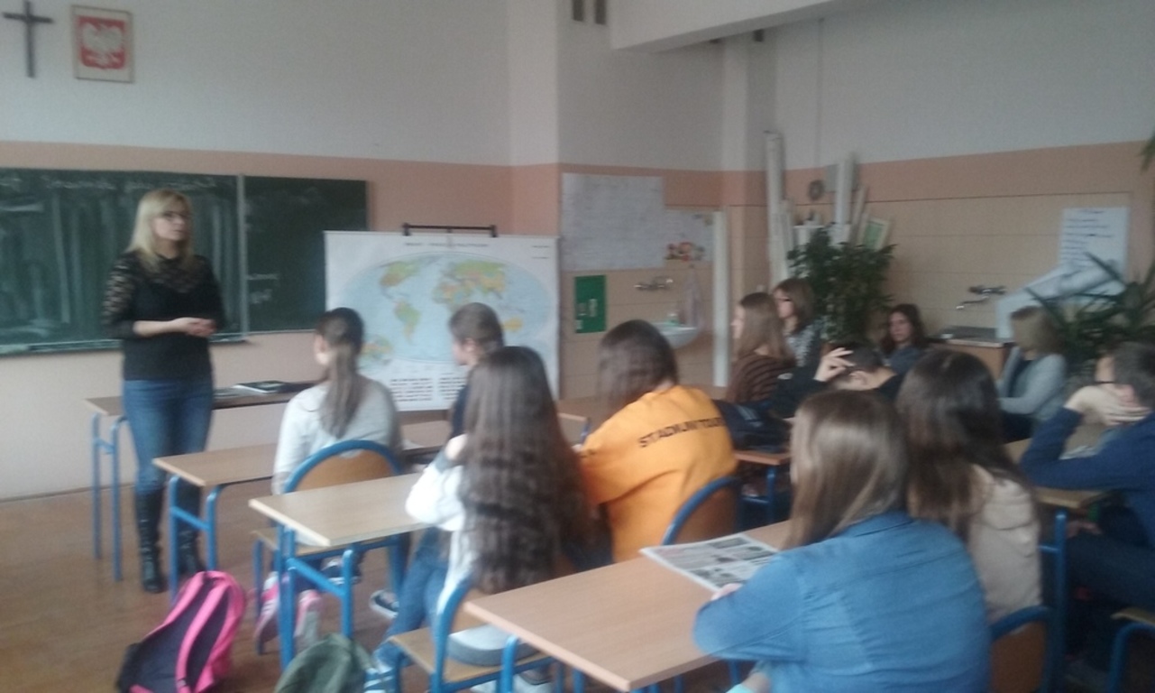 Ewą Kłak- Zarzecką. Uczniowie dowiedzieli się, jak założyć własną gazetę, czym jest i jak jest zbudowana informacja, co odróżnia news od plotki, jakie obowiązki ma dziennikarz, w jaki sposób świadomie i krytycznie odbierać przekaz medialny, jak napisać dobry artykuł, reportaż. Pani redaktor podkreślała, że praca powinna być pasją. Jest to bardzo ważne, bo dzięki temu będzie ona również przyjemnością a nie tylko obowiązkiem. Młodzież była zainteresowana rozmową. Spotkanie zorganizowała Agnieszka Pieniążek.