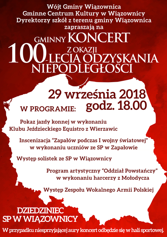 • Gminny Koncert z okazji 100 – lecia Odzyskania...