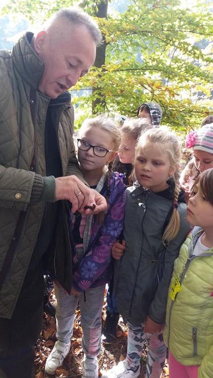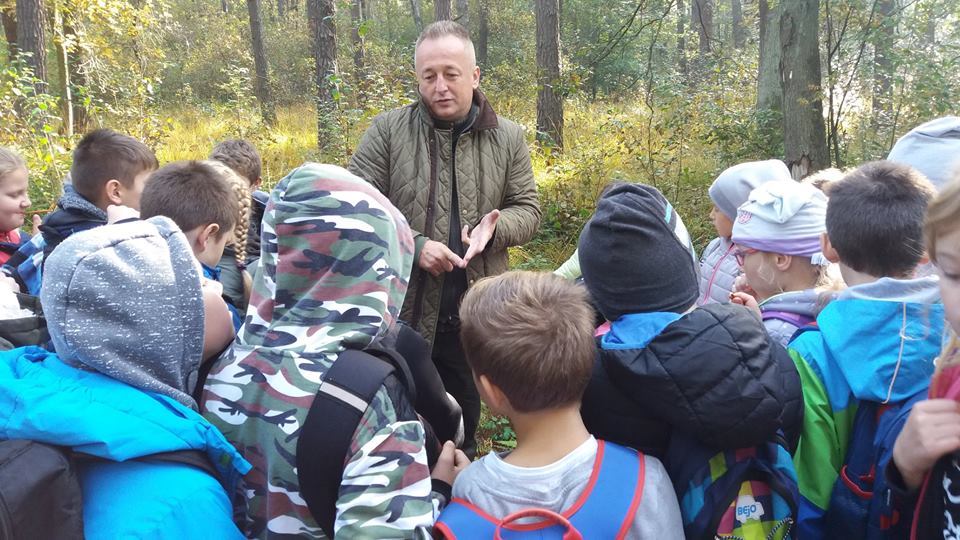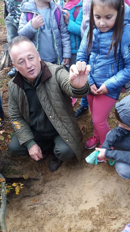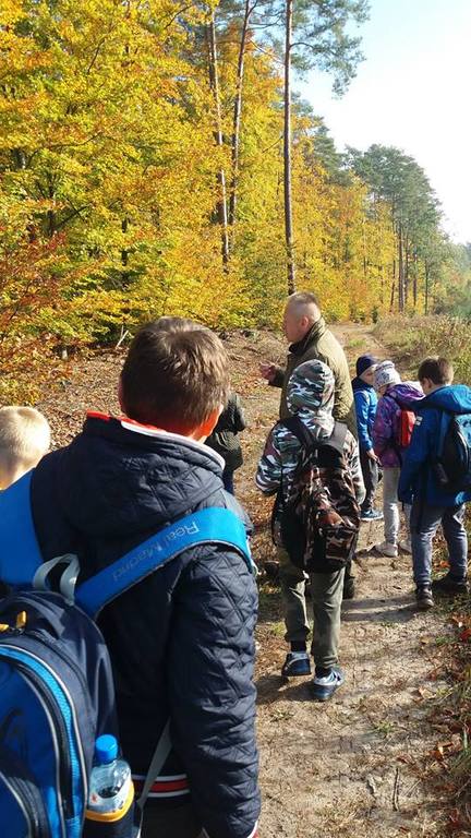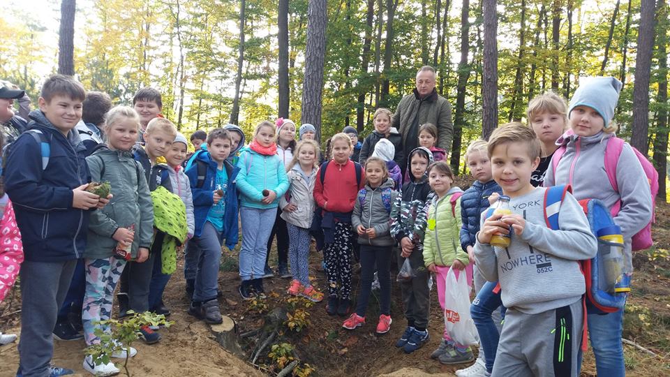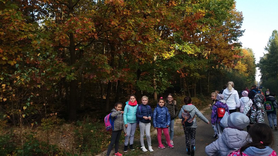 11 października uczniowie klas 0 oraz II-III naszej Szkoły wraz z wychowawcami wybrali się na wycieczkę do lasu oraz do Radawy. Był piękny, słoneczny dzień. Podróż odbyliśmy autobusem, dzięki czemu przypomnieliśmy sobie, jak należy zachowywać się w środkach komunikacji miejskiej. Po kilku minutach dotarliśmy do Łapajówki. Na miejscu odbyliśmy długi spacer przez las. Obserwowaliśmy przyrodę i zachodzące wczesną jesienią zmiany. Poznaliśmy warstwową budowę lasu, czasami udało się usłyszeć śpiew ptaków. Po długim spacerze dołączył do nas leśniczy – pan Mariusz Ścibor z Nadleśnictwa Jarosław. Spotkanie przebiegało w bardzo miłej atmosferze. Pan leśniczy z niezwykłą swobodą opowiadał uczestnikom wycieczki o środowisku leśnym. Przypomniał zasady bezpieczeństwa obowiązujące w lesie, udzielił wskazówek, jak postępować w przypadku zgubienia się. Pokazał nam również borsucze jamy. Na koniec pomagał nam w rozpoznawaniu grzybów i udzielał ważnych wskazówek dotyczących grzybobrania. Następnym punktem naszego wyjazdu była wycieczka do Radawy. Mogliśmy się tam wspólnie pobawić oraz pograć w piłkę. Zarówno wycieczka, jak i piknik były bardzo udane. Pogoda i humor nam dopisały. Zmęczeni, ale uśmiechnięci wróciliśmy do szkoły. Nasze wesołe miny na zdjęciach świadczą o udanym wyjeździe. Z pewnością go powtórzymy!