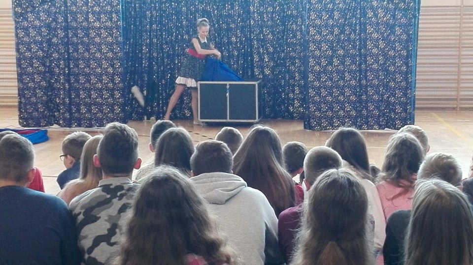 23 października 2018r. naszą szkołę odwiedził iluzjonista Aleksander Tkacz wraz ze swoim zespołem towarzyszącym. Uczniowie mieli okazję zobaczyć ciekawe efekty iluzjonistyczne: pojawianie się, znikanie, unoszenie w powietrzu, metamorfozę osób, niesamowitą wersję „przecinania człowieka na pół” oraz przejście przez metalową klatkę. Artysta zaprezentował wiele niezwykłych sztuczek, które wymagały sprytu i niezwykłej dokładności. Całość dopełnił udział w przedstawieniu publiczności i dawka dobrego humoru.