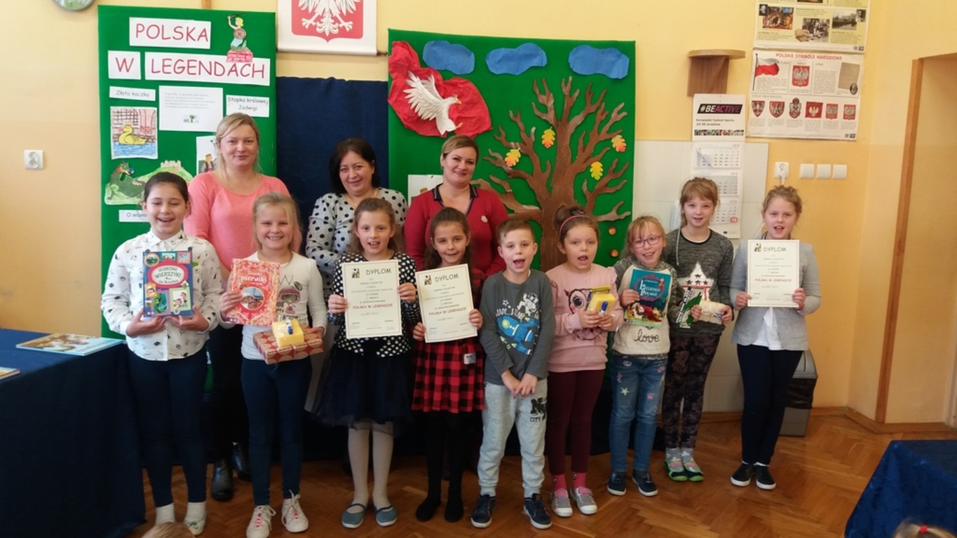 Wśród różnych działań organizowanych w szkole z okazji 100. rocznicy odzyskania przez Polskę niepodległości dla najmłodszych uczniów zorganizowany został konkurs czytelniczy Polska w legendach.