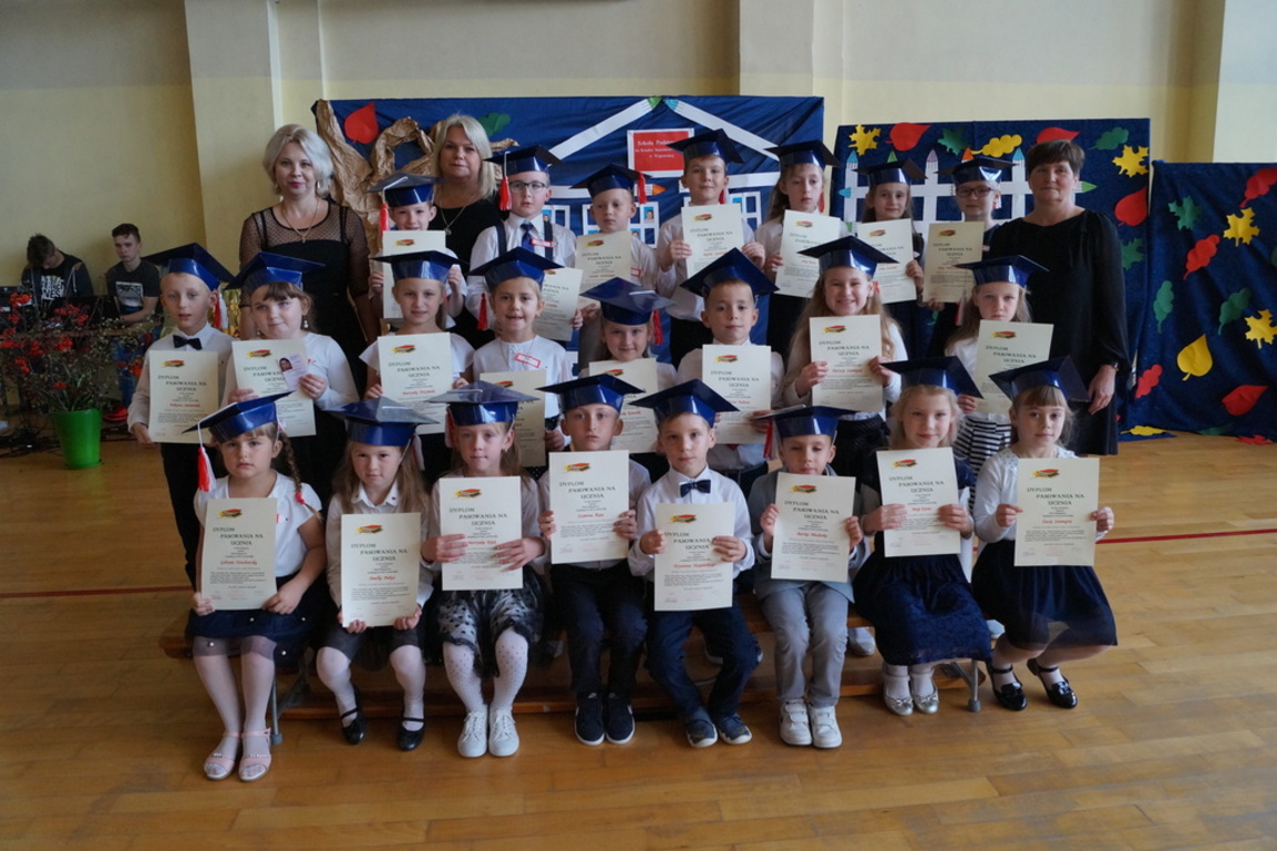 Miejmy nadzieję, że słowa przyrzeczenia, które składali, będą dla nich drogowskazem na długie szkolne lata. Po złożeniu ślubowania każdy z pierwszaków dostąpił zaszczytu pasowania na ucznia, dokonanego symbolicznym ołówkiem przez Panią Dyrektor Agnieszkę Kukułkę. Z okazji tej uroczystości wręczone zostały uczniom okolicznościowe dyplomy oraz upominki ufundowane przez Panią Dyrektor, Radę Rodziców i Rodziców pierwszaków. Otrzymali oni także pierwszą w życiu legitymację szkolną. Starsi uczniowie życzyli sukcesów w nauce oraz zapewnili o pomocy oraz opiece w szkole i poza nią. Do życzeń dołączyli się nauczyciele i rodzice.