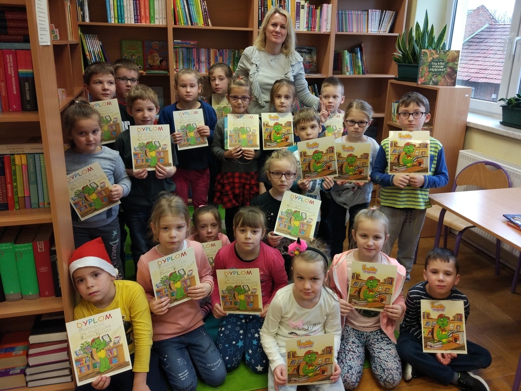Głównym celem uroczystości było zachęcenie najmłodszych uczniów do korzystania z biblioteki szkolnej, wypożyczania książek oraz nieustannego rozwijania umiejętności czytania.