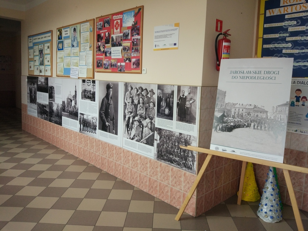 Muzeum wypożyczyło nam wystawę- cykl fotografii „Jarosławskie drogi do niepodległości”. Ilustracje przedstawiają polskie oddziały zbrojne przed wybuchem I wojny, w czasie wojny i aż po lata walki z Ukraińcami po I wojnie światowej. Na zdjęciach ukazani są bohaterowie, którzy poświęcili się dla ojczyzny. Jeden z obrazów pokazuje zbombardowany w czasie wojny kościół w Wiązownicy.