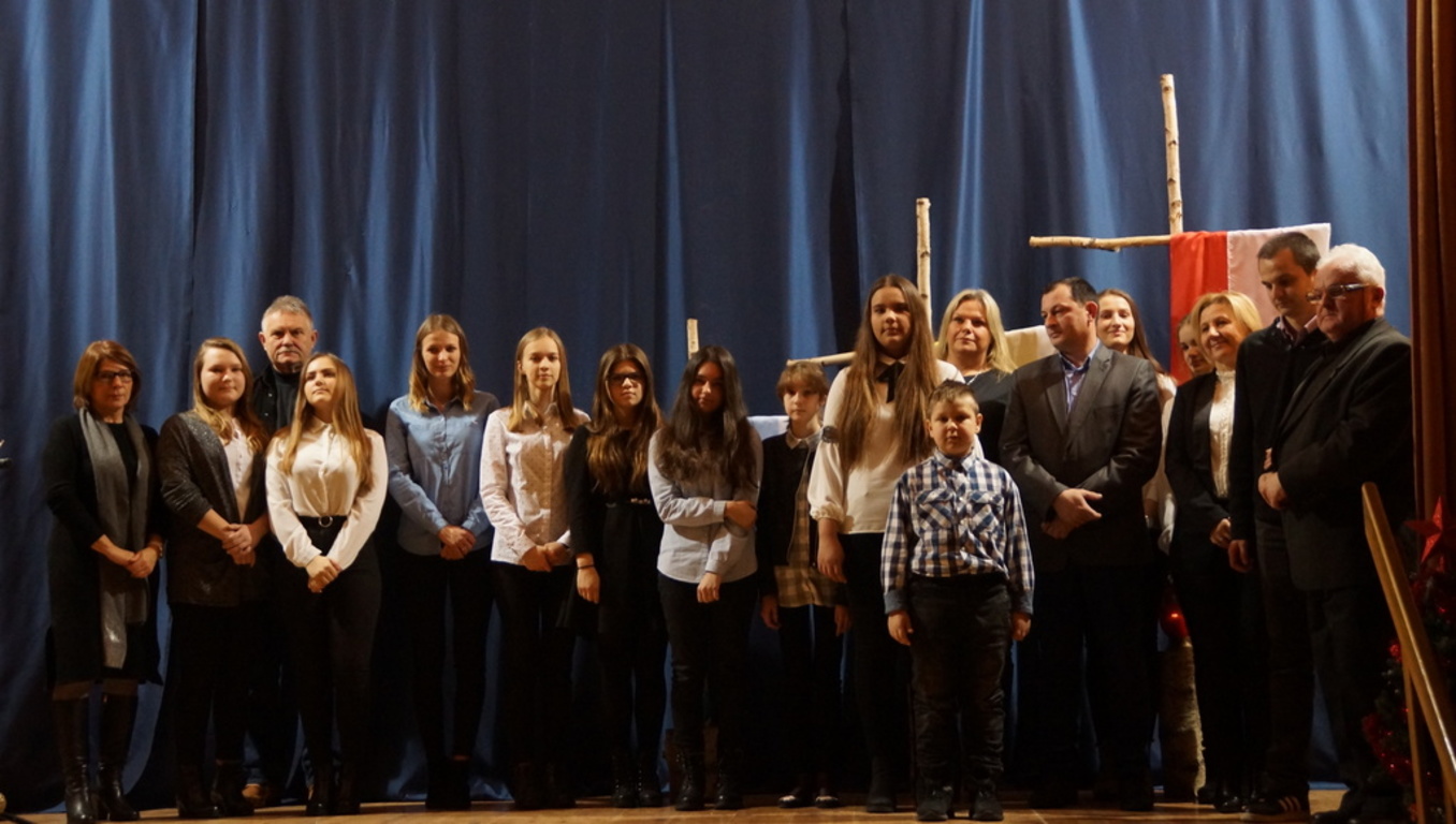 16 grudnia w Gminnym Centrum Kultury w Wiązownicy odbył się Charytatywny Koncert Patriotyczny „Pomóżmy bliźniemu swemu”. Jego celem było zebranie środków pieniężnych na dalsze leczenie mieszkańca Wiązownicy - Darka Płachetki. Podczas koncertu wystąpiła młodzież ze Szkoły Podstawowej w Wiązownicy i Szkoły Podstawowej w Szówsku, absolwentki oraz zespół Ekipa. Przybyli goście mogli po raz kolejny przeżyć piękną lekcję historii wsłuchując się w treść pieśni i piosenek patriotycznych. Młodzi artyści pod koniec koncertu zaśpiewali piosenki świąteczne, które wprowadziły słuchaczy w klimat świąt Bożego Narodzenia. Nie zabrakło również świątecznych życzeń. Wszystkich ucieszył fakt, że Darek, dla którego koncert został zorganizowany był wraz z członkami swojej rodziny na widowni. Gościnnie zaśpiewał również jego siostrzeniec, a zarazem nasz uczeń - Jakub Frącz.