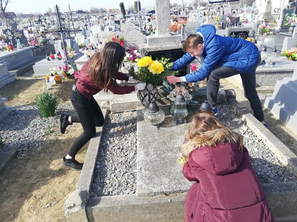 W związku ze zbliżającą się rocznicą napadu Bandy UPA na Wiązownicę uczniowie klas III gimnazjum: Andżelika Kruba, Ewelina Piśko, Gabriela Rokosz oraz Hubert Siry odwiedzili, a także uprzątnęli groby ofiar. Złożone kwiaty, a także zapalone znicze były oznaką naszej pamięci.
