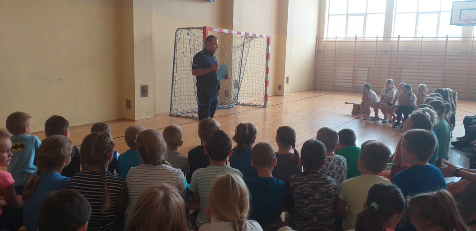 W ramach edukacji z zakresu bezpieczeństwa ruchu drogowego szóstego września 2019 roku odwiedził nas pan aspirant sztabowy Daniel Cienki, funkcjonariusz z posterunku Policji w Wiązownicy.