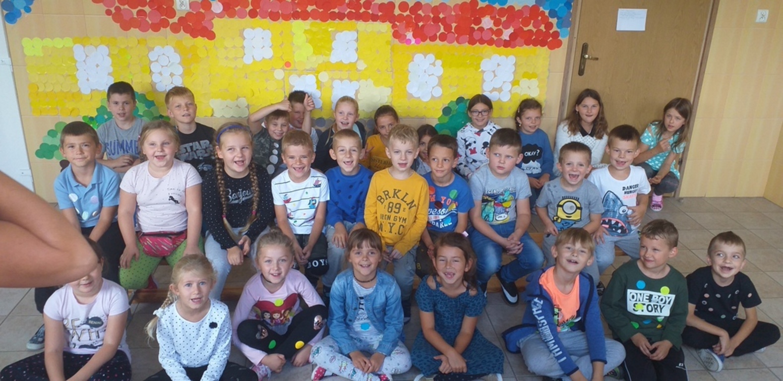 Tego dnia uczniowie klas 0 - III „ubrani w kropki” obejrzeli krótki film o Vashti, a potem dzielili się wrażeniami i uwagami na jego temat. Najważniejszym wydarzeniem były zajęcia plastyczne inspirowane kropką. Dzieci przygotowywały różnokolorowe kropki wycięte z papieru, z których został ułożony obrazek przedstawiający naszą szkołę.