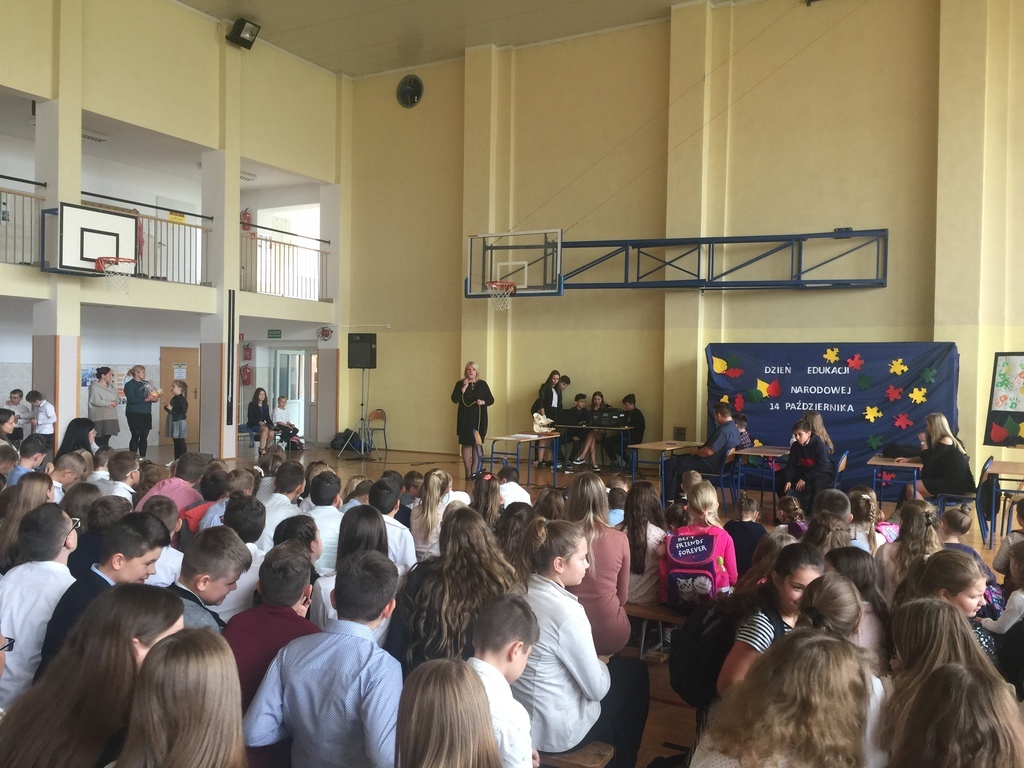 Z okazji Dnia Edukacji Narodowej w naszej szkole odbyła się uroczysta akademia. Uroczystość rozpoczęła Pani Dyrektor, która podziękowała wszystkim pracownikom szkoły oraz nauczycielom za trud włożony w wychowanie dzieci i młodzieży oraz zachęciła do dalszej, owocnej pracy. W podziękowaniu za wysokie wyniki egzaminów zewnętrznych i osiągnięcia uczniów uhonorowała nauczycieli, którzy w szczególny sposób wyróżnili się zaangażowaniem w życie szkoły i społeczności lokalnej.