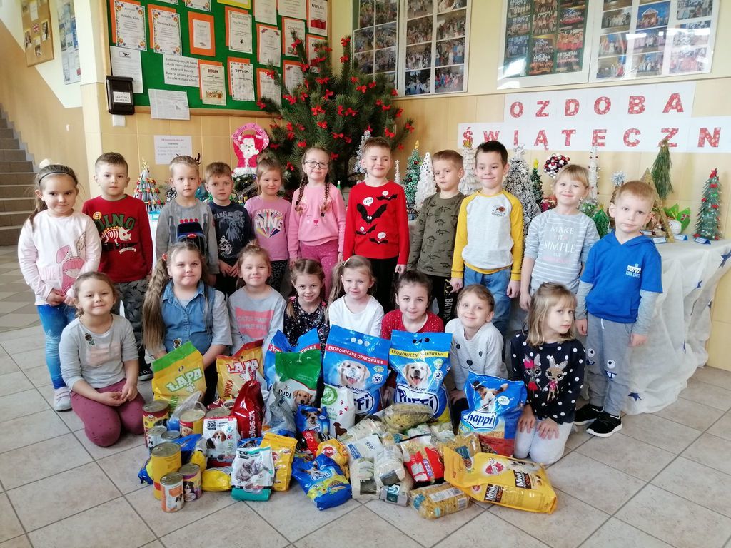 Tradycją w naszej szkole stała się coroczna akcja zbiórki darów dla psów, które znajdują się w Gminnym Przytulisku w Wiązownicy. Organizacją zbiórki zajęli się członkowie Szkolnego Koła Wolontariatu. Włączyli się w nią uczniowie, rodzice oraz nauczyciele, którzy przynieśli do szkoły suchą i mokrą karmę, makarony, kasze oraz miski i koce dla psiaków. Przed świętami zebrane dary zostały dostarczone do przytuliska.
