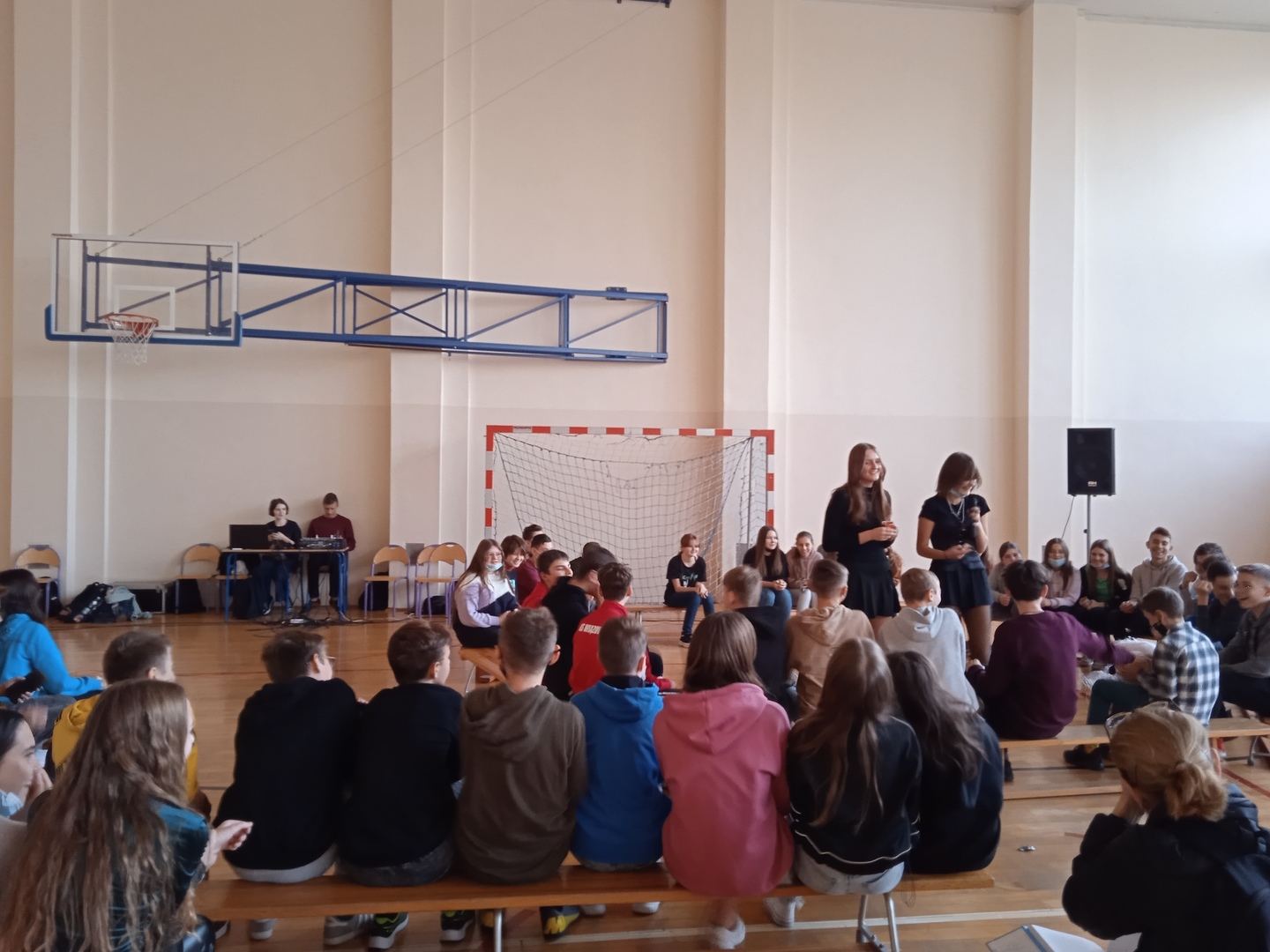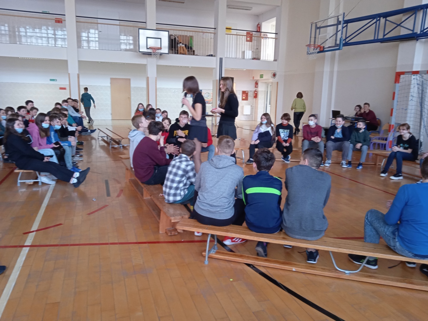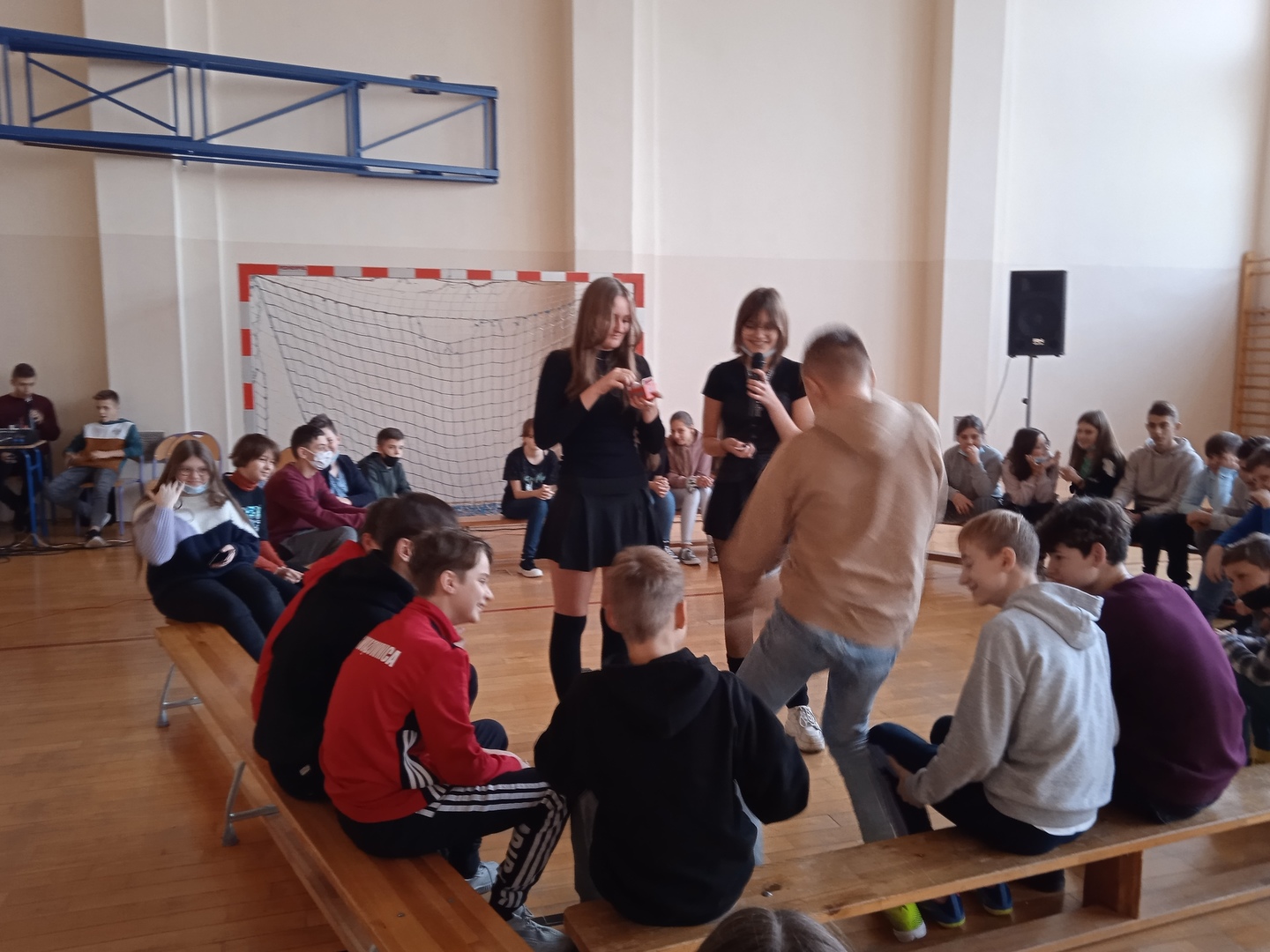 Uczniowie chętnie włączyli sie do wspólnej zabawy, dało się zauważyć tęsknotę za tego typu imprezami szkolnymi po etapie nauczania zdalnego.