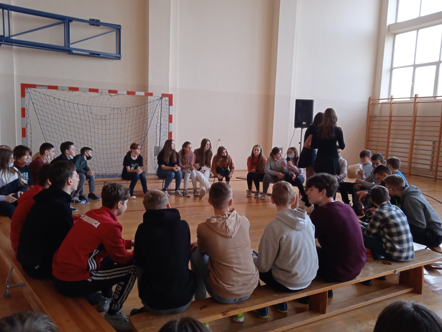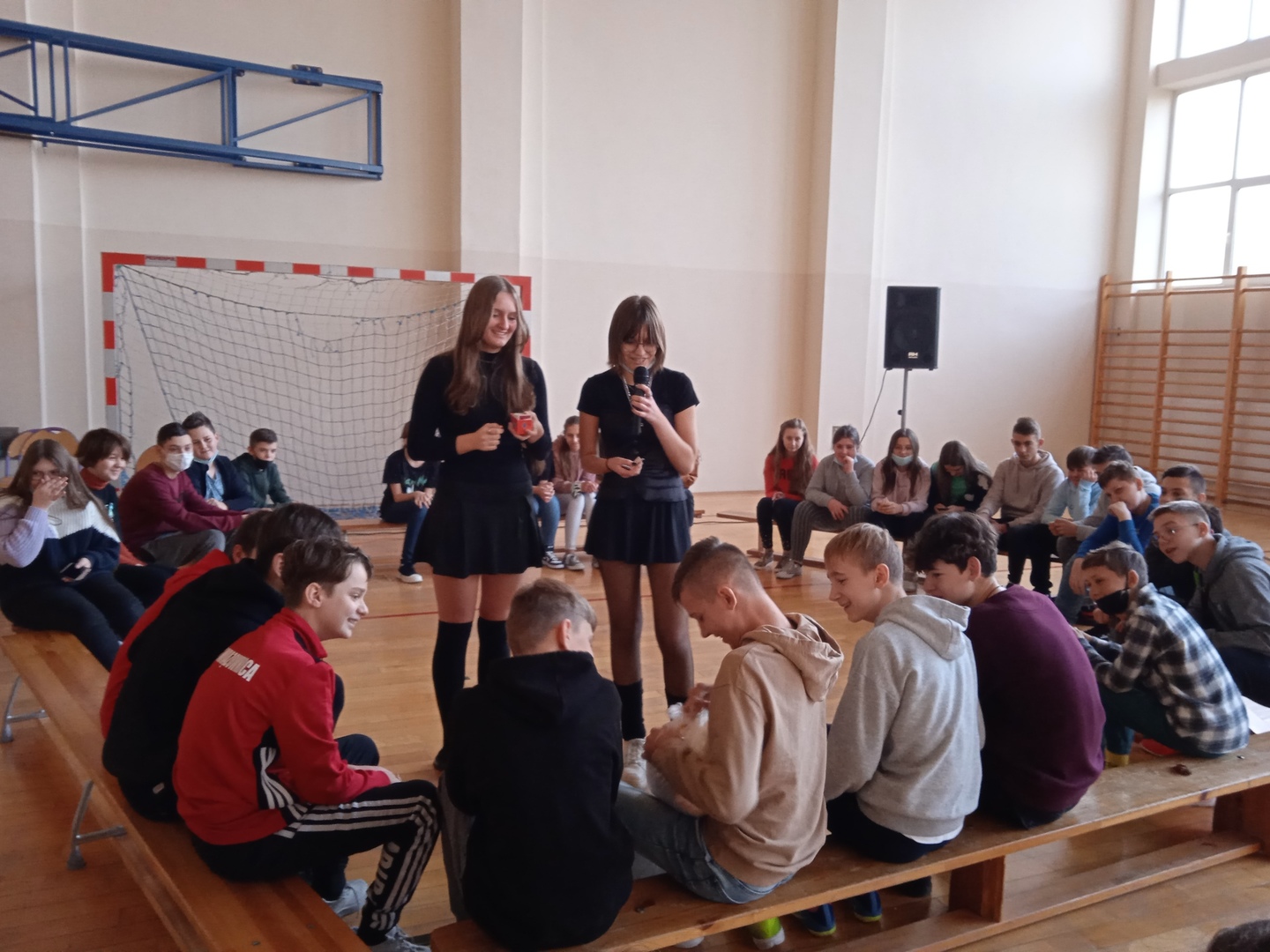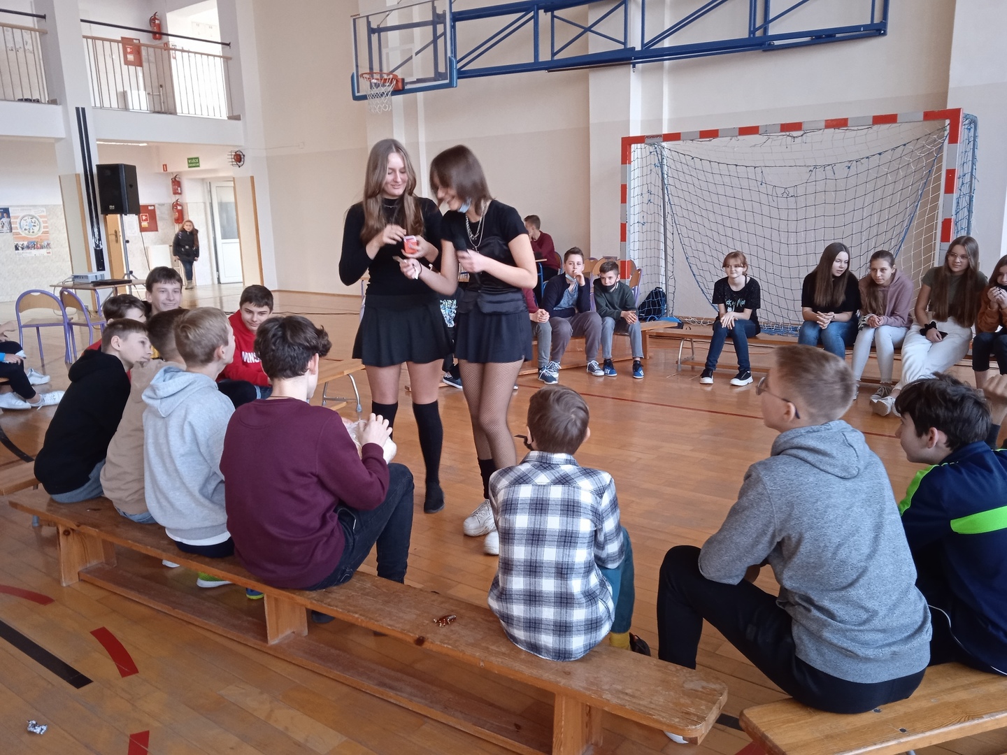 Uczniowie chętnie włączyli sie do wspólnej zabawy, dało się zauważyć tęsknotę za tego typu imprezami szkolnymi po etapie nauczania zdalnego.