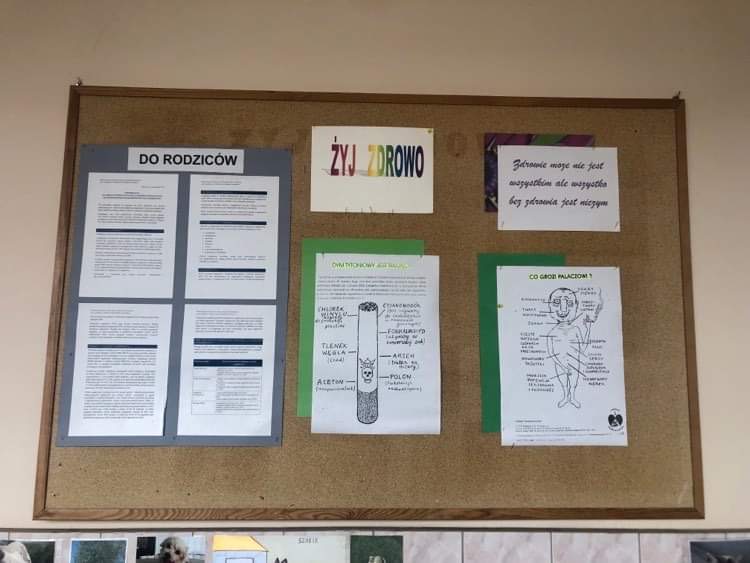 Spotkania na temat szkodliwości palenia przeprowadziła szkolna pielęgniarka – pani Danuta Naspińska. Odbyły się one w klasach starszych, Uczniowie wysłuchali prelekcji, zadawali pytania, przeliczali ilość pieniędzy wydanych na papierosy, została przygotowana prezentacja.