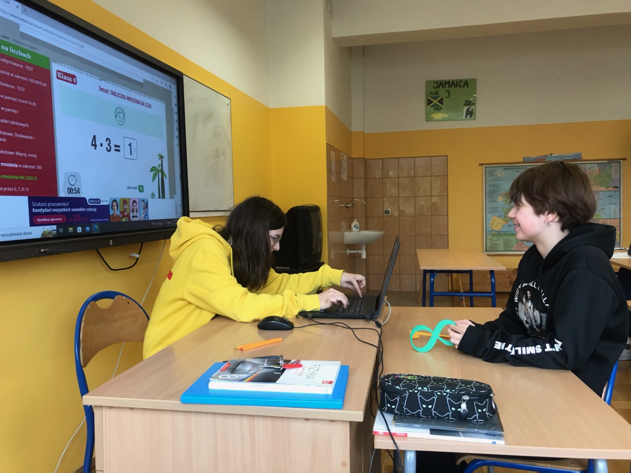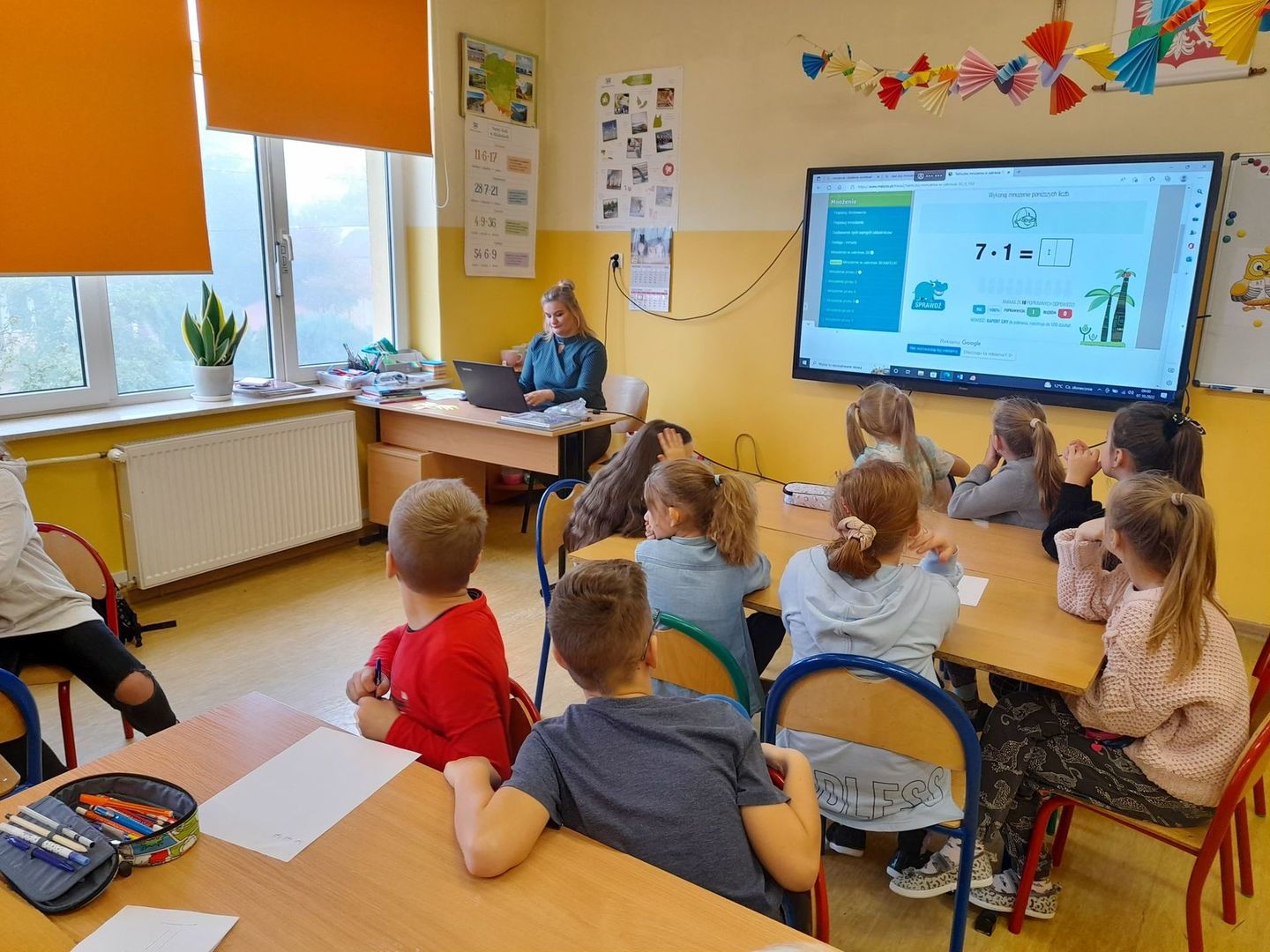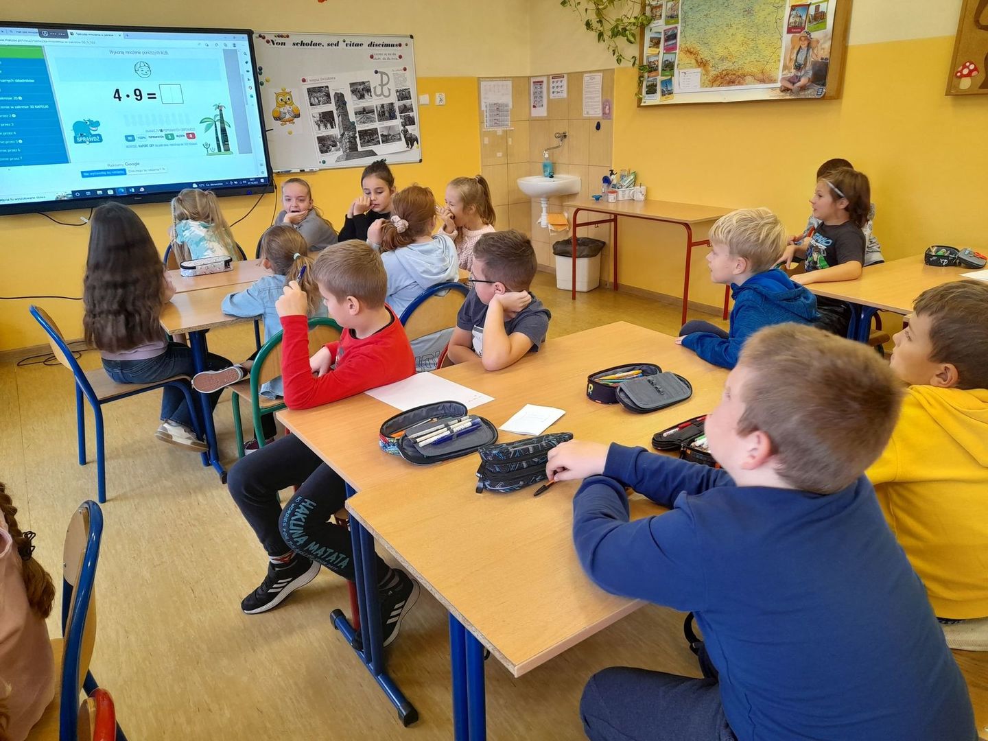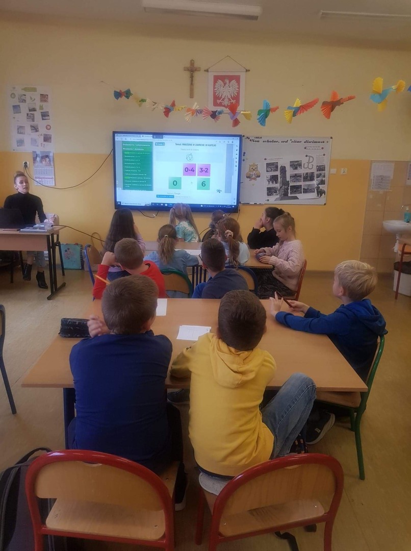 Klasy 3a i 3b przeprowadziły potyczki matematyczne, których celem było sprawdzenie umiejętności mnożenia i dzielenia. Trzecioklasiści pod opieką p. Agnieszki Pigoń i p. Katarzyny Zbierak wykonywali grupowe zadanie na kartach pracy oraz rozwiązywali quizy polegające na jak najszybszym odnalezieniu prawidłowego wyniku. Zabawa zakończyła się remisem, co świadczy o tym, że trzeciaki doskonale znają tabliczkę mnożenia.