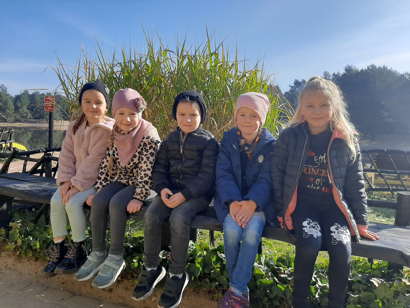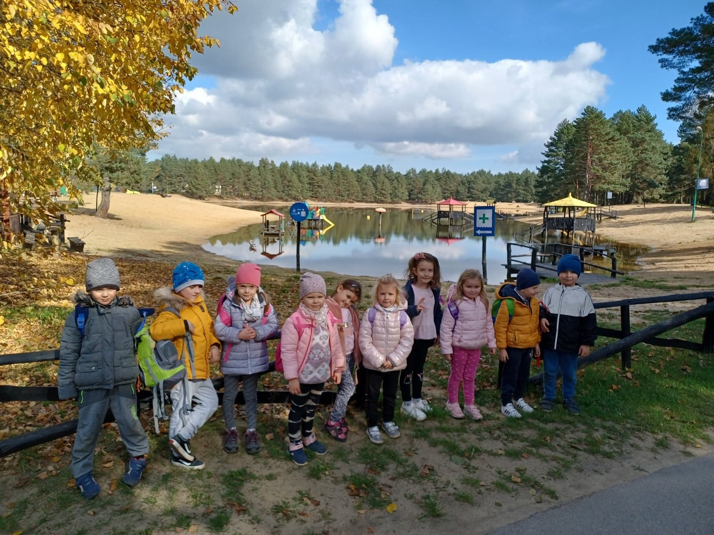 Korzystając ze słonecznej i pięknej pogody, w środę dzieci z oddziałów przedszkolnych wraz z wychowawczyniami wybrały się na wycieczkę do Radawy. Głównym celem wyjazdu było przybliżenie przedszkolakom środowiska przyrodniczego, jakim jest las. Dzieci chciały sprawdzić czy w lesie też już zagościła jesień. Nasze przedszkolaki chętnie spacerowały leśnymi dróżkami szukając jesiennych skarbów. Po krótkim spacerze wszyscy udali się na teren ośrodka GOWiR. Tam czekały na dzieci pyszne kiełbaski i gorąca herbata. Zwieńczeniem wycieczki były wspólne zabawy na placu zabaw.