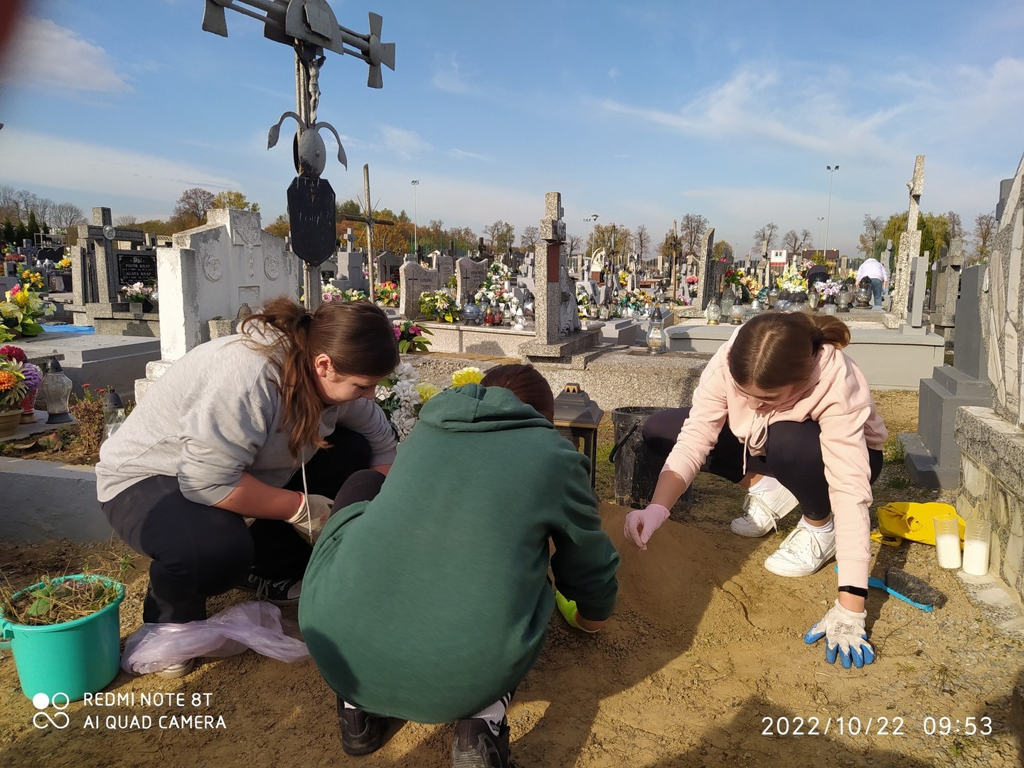 W środę 19 października i w sobotę 22 października uczniowie kl. VIII a oraz wolontariusze Szkolnego Koła Caritas przeprowadzili jak co roku akcję "Dla tych, którzy odeszli", która polegała na sprzątaniu opuszczonych grobów. Dzięki dużej liczbie chętnych oraz pięknej pogodzie udało się posprzątać kilkadziesiąt grobów. Dziękujemy wszystkim zaangażowanym uczniom i nauczycielom