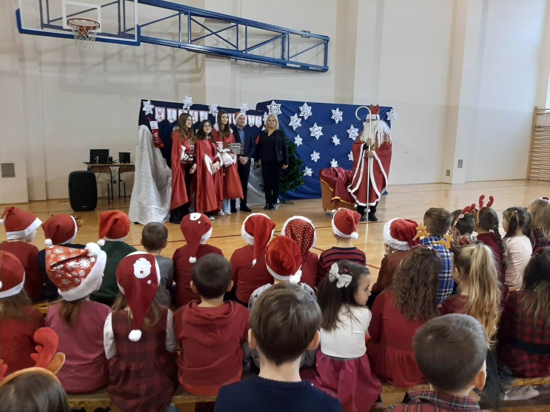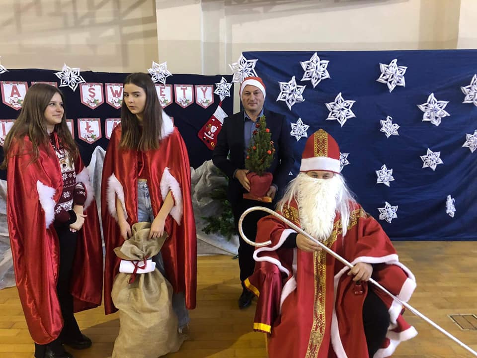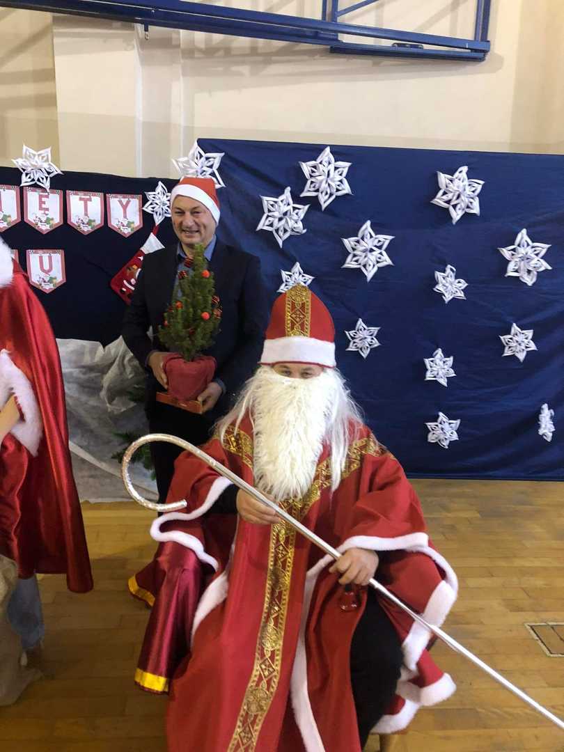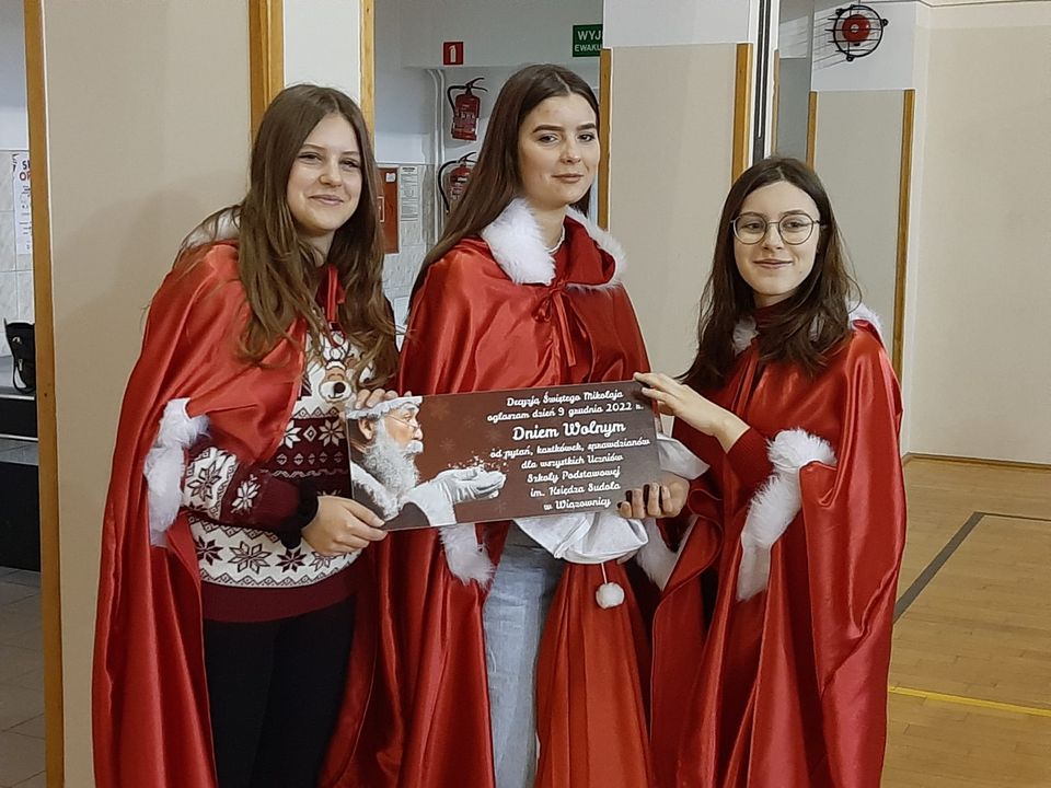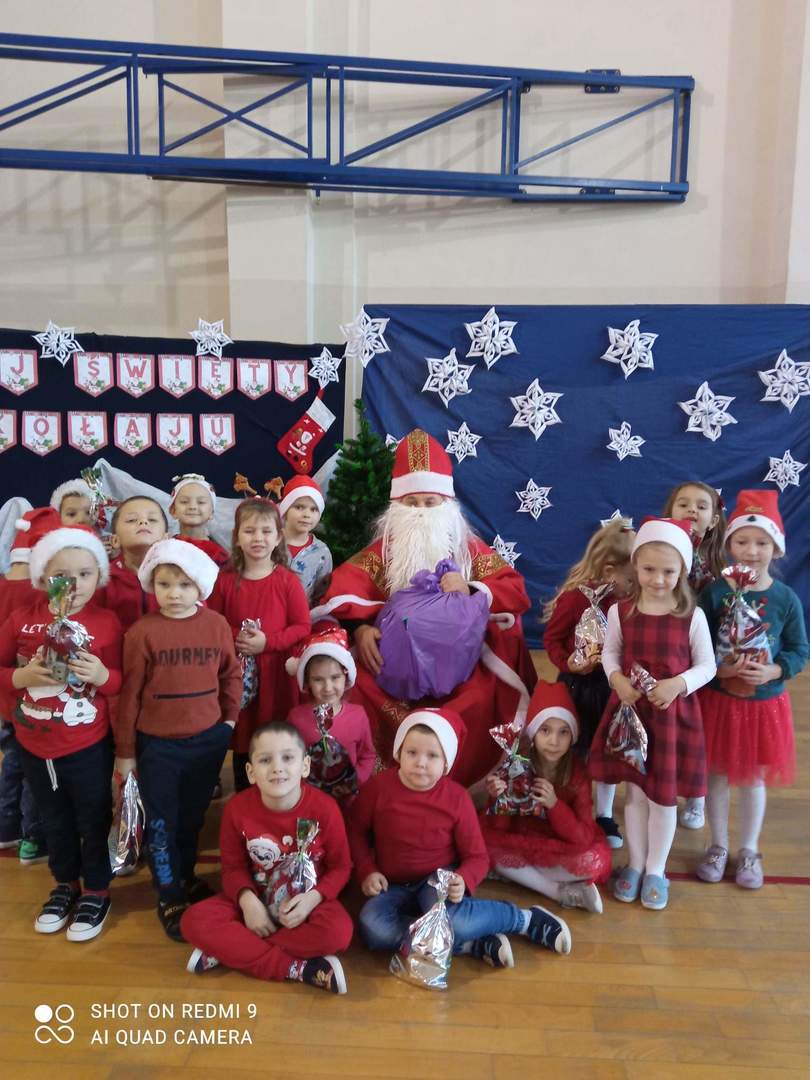 6 grudnia 2022 roku naszą szkołę odwiedził długo oczekiwany gość - Święty Mikołaj. Mikołaj przybył w towarzystwie Wójta Gminy Wiązownica Pana Krzysztofa Strenta. Swoją obecnością goście sprawili wszystkim wiele radości. Z okazji mikołajek wszyscy uczniowie pojawili się w czerwonych strojach, co nadało uroczystości wyjątkowo odświętnego charakteru. Na powitanie szanownych gości dzieci z oddziałów przedszkolnych wyrecytowały wiersz oraz zaśpiewały specjalnie przygotowaną piosenkę. Wójt podarował uczniom worek pełen prezentów, przekazał też decyzję Świętego Mikołaja o ogłoszeniu dnia 9 grudnia dniem wolnym od pytań, kartkówek i sprawdzianów. Wszystkie dzieci otrzymały od Mikołaja wspaniałe prezenty. Dzień ten na długo pozostanie w pamięci wszystkich uczniów.