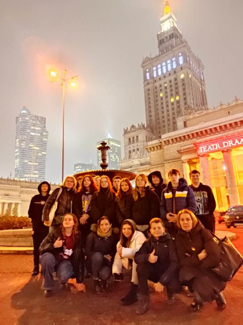 9 grudnia 2022 r. uczniowie klasy 7 wraz z opiekunami wyruszyli do Warszawy. Główną atrakcją wyjazdu były wystawy w Centrum Nauki Kopernik, które dały uczniom swobodną przestrzeń do własnych obserwacji i eksperymentów. - Jak to się stało, że Ziemia przetrwała we wszechświecie? Tego uczniowie dowiedzieli się z filmu ,,Narodziny Ziemi”, który obejrzeli w Planetarium. Film opowiadał o trudnych dziejach naszej planety. Podczas jednodniowego wyjazdu siódmoklasistom udało się również odwiedzić Muzeum Wojska Polskiego, zobaczyć Pomnik Powstania Warszawskiego oraz spędzić chwilę zadumy przy Grobie Nieznanego Żołnierza. Uczniowie zajrzeli do Ogrodu Saskiego, w którym rozpoczęto prace związane z odbudową pałacu. W drodze powrotnej zrobili pamiątkowe zdjęcie przed Pałacem Kultury i Nauki. Bogactwo świątecznych ozdób na Nowym Świecie i na Rynku Starego Miasta sprawiło, że wszyscy poczuli magiczną atmosferę zbliżających się Świąt Bożego Narodzenia. Było fantastycznie!!!