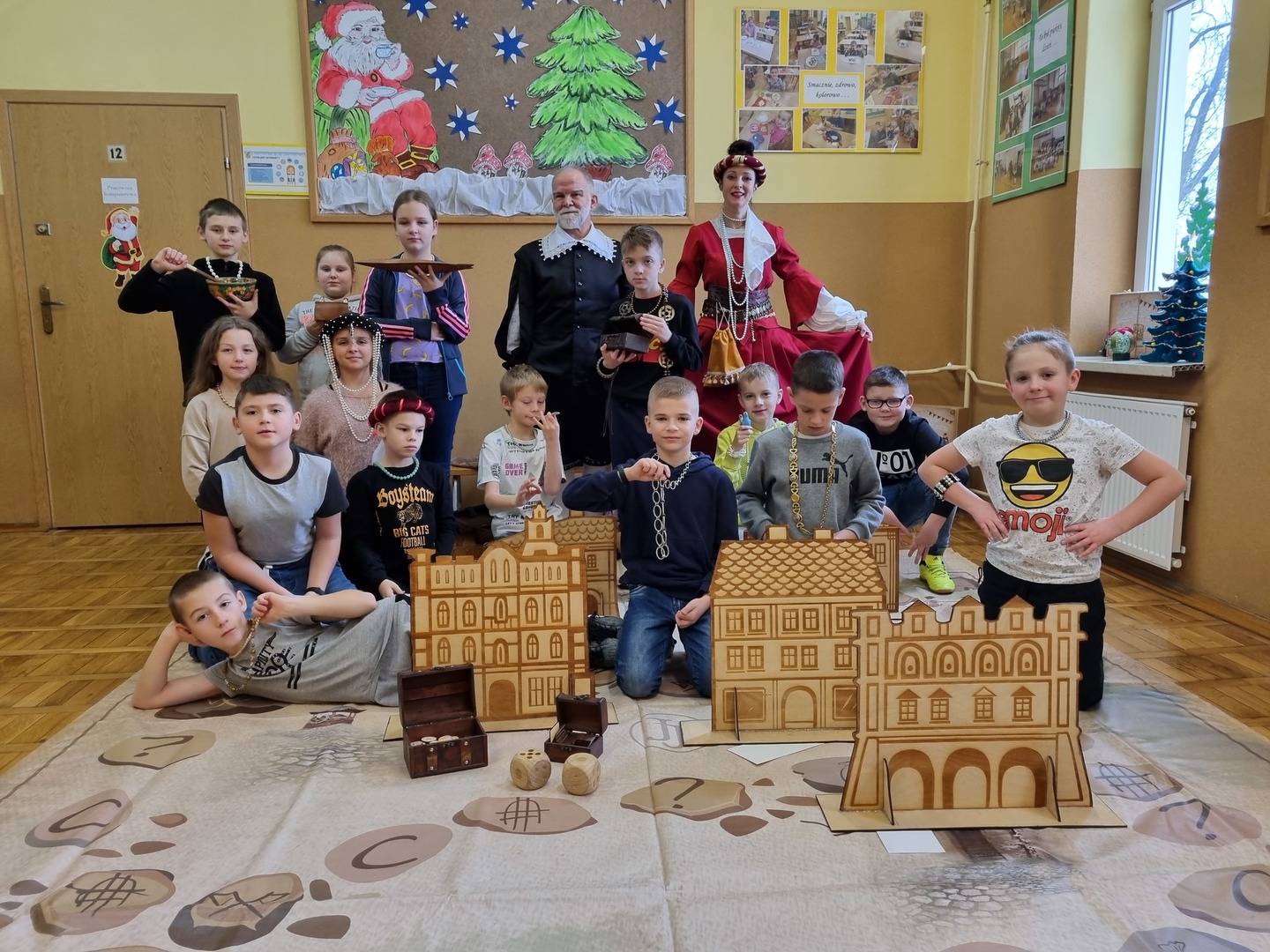 13 grudnia za sprawą Pana Henryka i Pani Barbary, przedstawicieli Centrum Edukacji Kulturalnej Jarosławskiego Ośrodka Kultury i Sztuki Kuferek-Księgarnia, uczniowie klasy IV uczestniczyli w niezwykłej lekcji historii w XVI-wiecznym Jarosławiu. Młodzi adepci sztuki handlu mieli okazję spróbować swoich sił, biorąc udział w rozgrywkach kupieckich w oparciu o grę „Przygoda na Jarmarku Jarosławskim” w wersji wielkoformatowej. Uczniowie mieli możliwość zgłębiać tajniki kupieckiego fachu kupując sprzedając towary dostępne w czasie jarosławskich jarmarków oraz nabywając kamienice znajdujące się na miejskim rynku. Rozgrywkom towarzyszyły ogromne emocje i świetna zabawa.