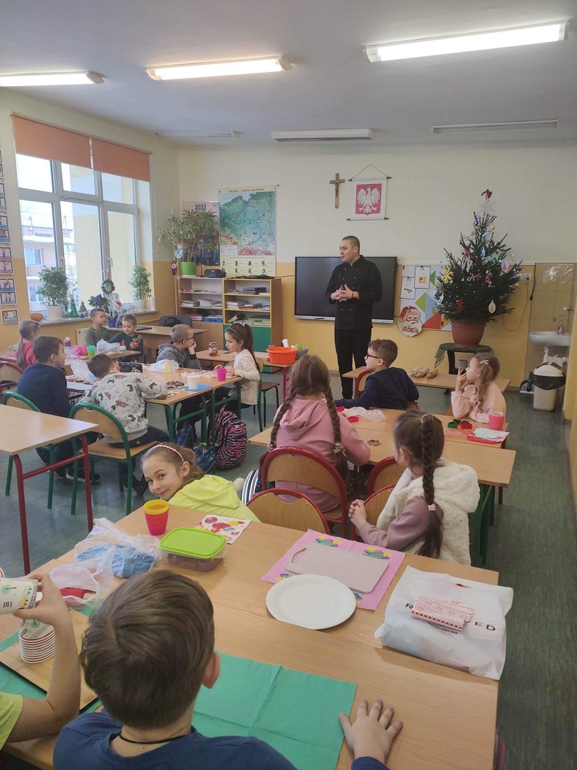 14 grudnia w klasie pierwszej odbyło się spotkanie z Panem Piotrem Borchowcem z zawodu kucharzem, który w ciekawy sposób wprowadził uczniów w tajniki tego zawodu. To już drugie spotkanie z cyklu Poznajemy zawody. Następnie odbyło się pieczenie i dekorowanie świątecznych pierników pod okiem mistrza. W trakcie zajęć uczniowie poznali tradycyjną recepturę oraz wszystkie składniki piernikowego ciasta oraz idealnego lukru.