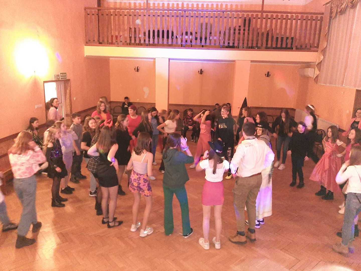 Punktualnie o 17:00 w Gminnym Centrum Kultury w Wiązownicy wstawili się uczniowie klas IV-VIII. Wszyscy świetnie się bawili przy rytmach różnorodnej muzyki. Były pociągi, kółeczka, tańce w parach oraz inne wygibasy . Humor dopisywał zarówno uczniom, jak i nauczycielom. Część uczestników, jak na prawdziwy bal karnawałowy przystało, włożyło wymyślne stroje. Na zakończenie imprezy wybrano królową i króla balu i parkietu. Królową została Karolina Hryń z kl.IV A, a królem Szymek Ciecierka, uczeń kl.VIII A