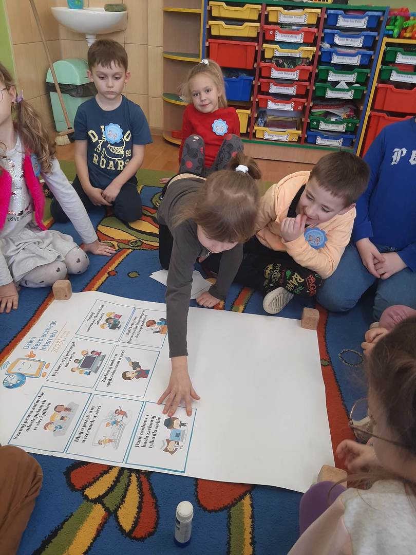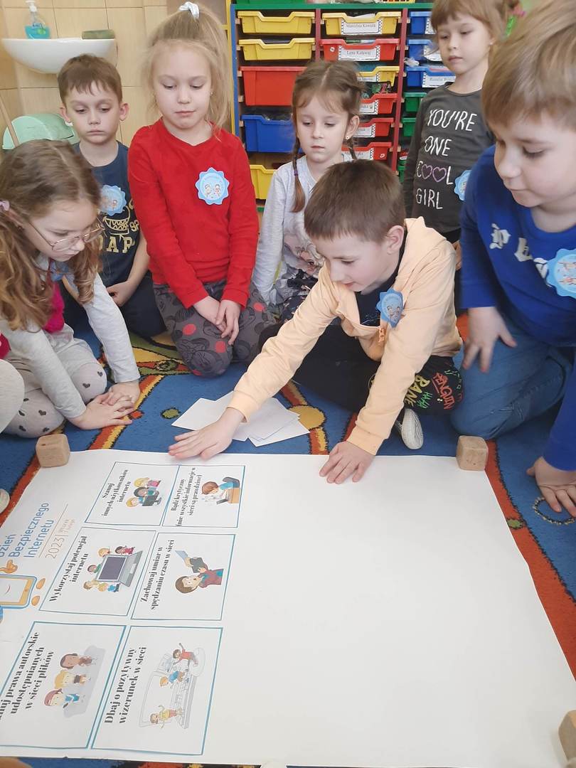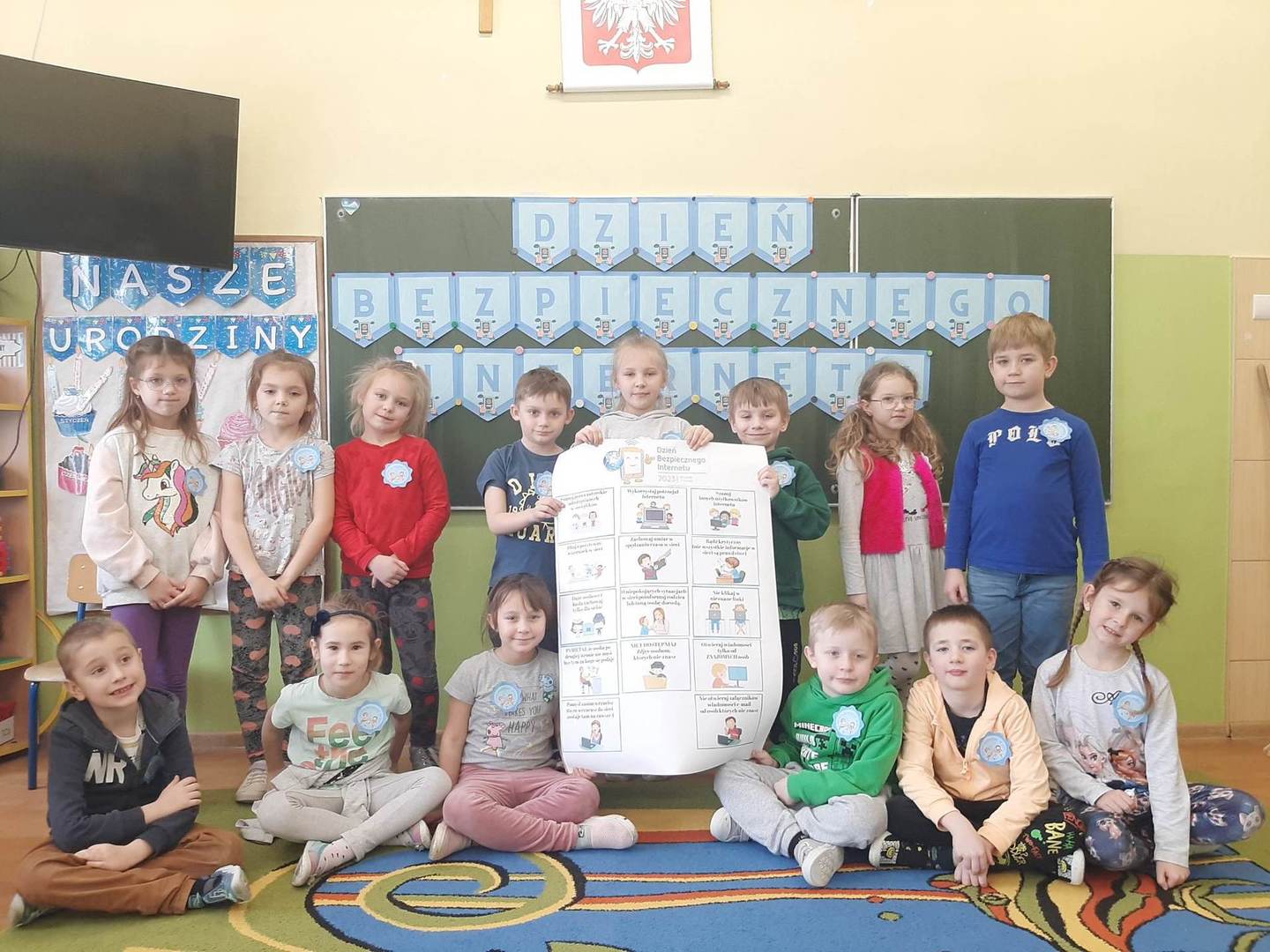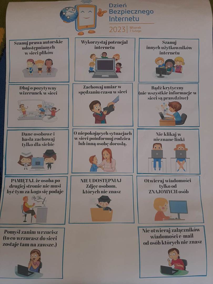 "Działajmy razem" to hasło obchodzonego 7 lutego 2023 roku Dnia Bezpiecznego Internetu, promującego działania zwiększające bezpieczeństwo w sieci. W tym roku do akcji włączyły się również dzieci z oddziałów przedszkolnych. Przedszkolaki dowiedziały się czym jest Internet oraz jakich zasad należy przestrzegać, aby bezpiecznie z niego korzystać. W celu usystematyzowania zdobytej wiedzy dzieci obejrzały bajkę pt.: „Mój przyjaciel Necio” oraz wspólnie stworzyły plakat z zasadami bezpieczeństwa w Internecie. Podsumowując dzisiejsze działania każdy przedszkolak narysował swojego robota Necio.