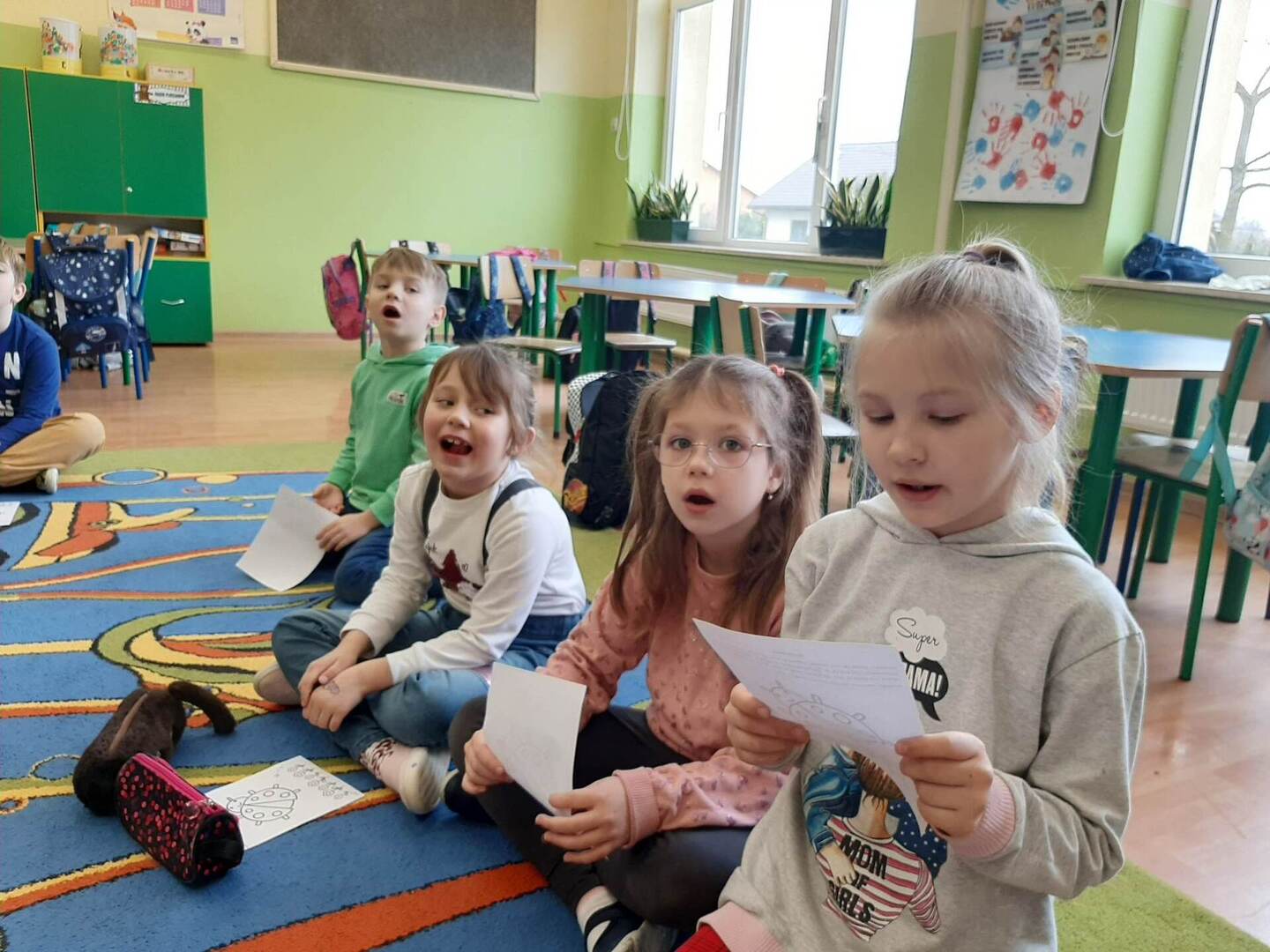 W związku z tym, w naszym oddziale przedszkolnym zorganizowany został dzień zabaw logopedycznych. Celem tego dnia było motywowanie dzieci do wspólnej zabawy i pracy logopedycznej, utrwalanie prawidłowych nawyków oddechowych oraz usprawnianie narządów artykulacyjnych. Dzieci dowiedziały się, kim jest logopeda, jaka jest jego rola oraz co należy zrobić, żeby pięknie i poprawnie mówić. Przedszkolaki bardzo chętnie uczestniczyły w przygotowanych zajęciach, a proponowane ćwiczenia warg, języka i żuchwy oraz podniebienia wykonywały z wielkim zaangażowaniem. Przyczynił się do tego „Tygrysek Diego”, który pobudził wyobraźnię dzieci i uatrakcyjnił zajęcia. Po zakończeniu ćwiczeń dzieci mogły pokolorować logopedyczną biedronkę.