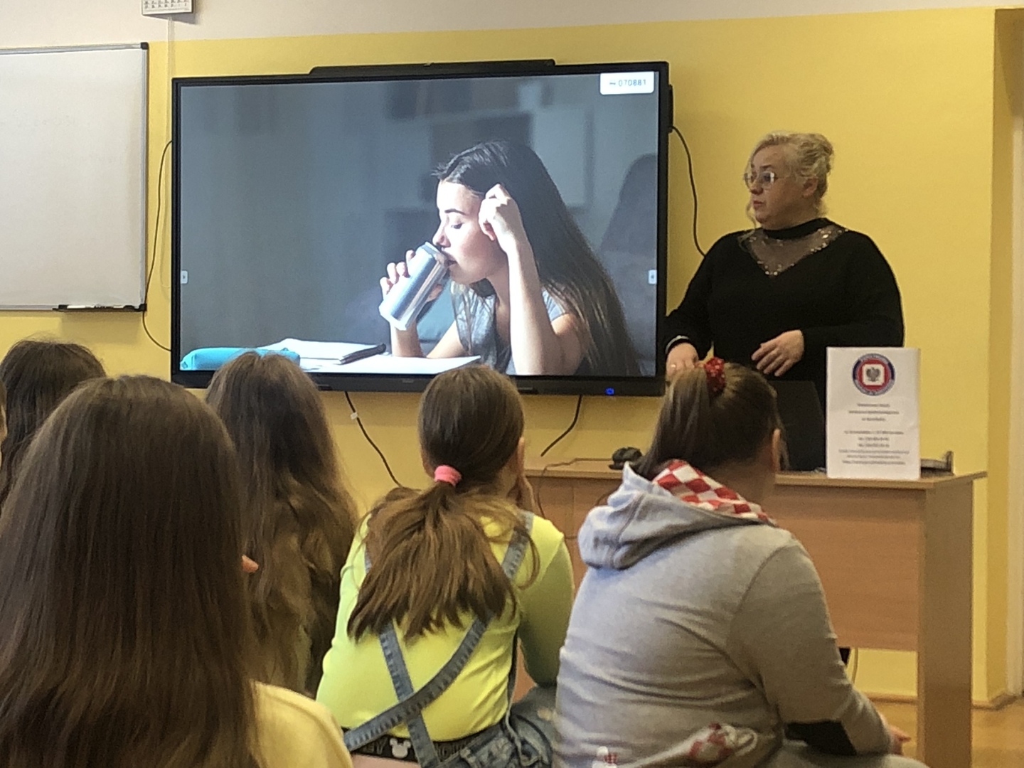 Kolejny już raz mieliśmy przyjemność gościć w murach naszej szkoły Panią mgr Renatę Majkut - Lotycz pracownicę Powiatowej Stacji Sanitarno- Epidemiologicznej w Jarosławiu, która przeprowadziła spotkanie z uczniami klas IV-VIII pr.,, Napoje energetyzujące - nie dla wszystkich,,. Uczniowie dowiedzieli się, jaki wpływ na młody organizm mają ,, energetyki,, oraz jaki jest ich skład. W czasie spotkania omówione zostały sposoby zdrowego odżywiania i aktywnego spędzania czasu. Serdecznie dziękujemy za owocne spotkanie i uświadomienie naszym uczniom szkodliwości spożywania energetyków.