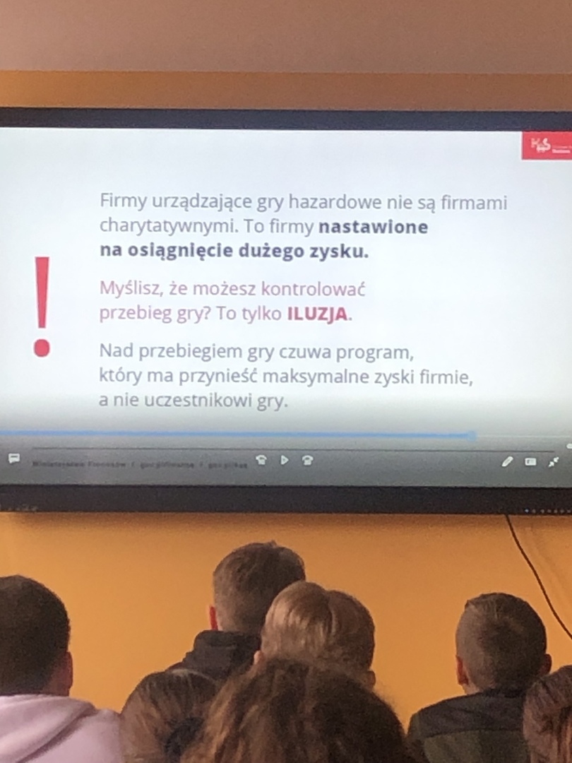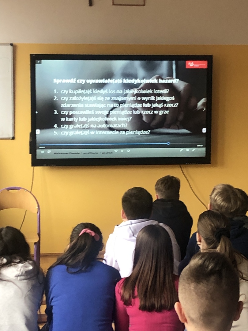 16 marca br. uczniowie klas siódmych i ósmych uczestniczyli w akcji edukacyjnej „Hazard? Nie daj się wciągnąć!”