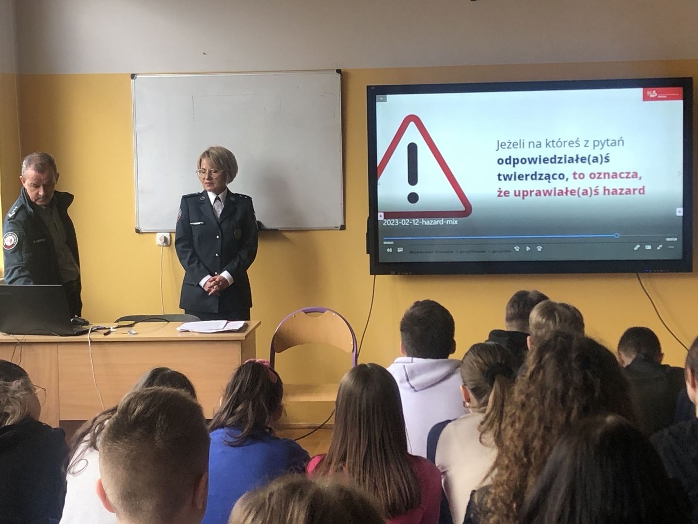 W ramach akcji Funkcjonariusze Podkarpackiego Urzędu Celno -Skarbowego w Przemyślu starszy aspirant Pani Izabella Kołeczek Woszczyna-oraz starszy aspirant Pan Zdzisław Czernecki przeprowadzili zajęcia, podczas których zwrócili uwagę na ryzyko związane