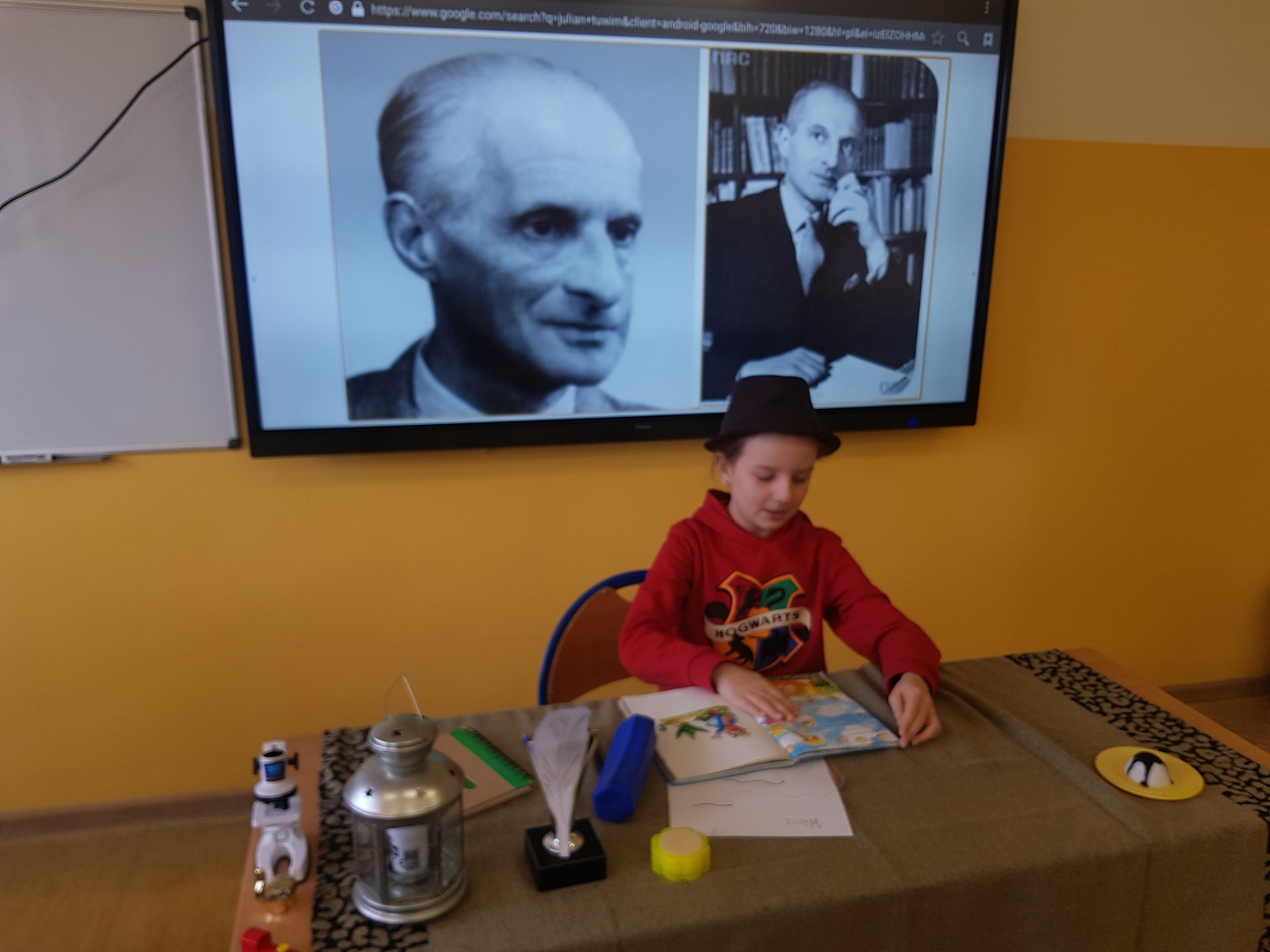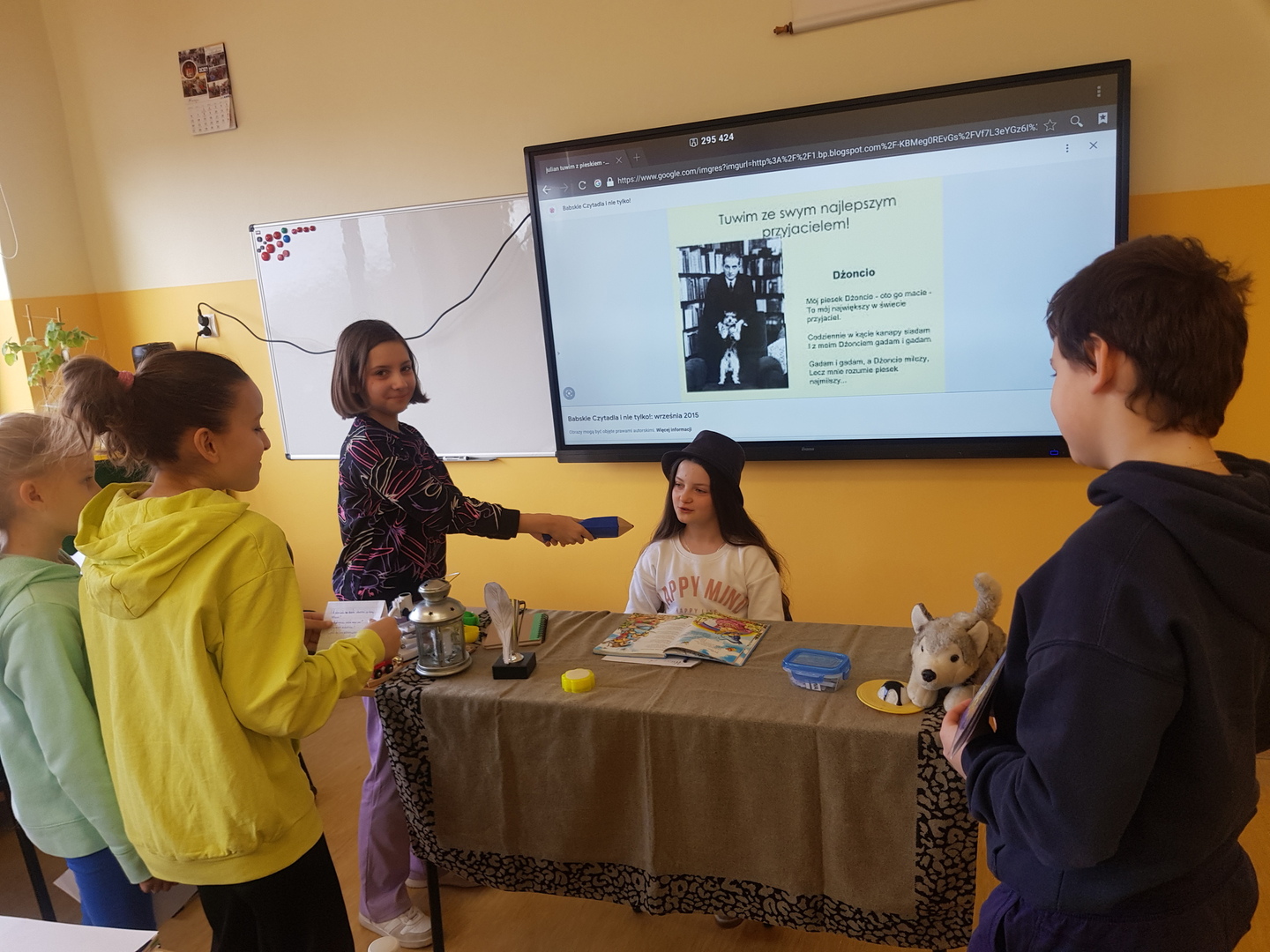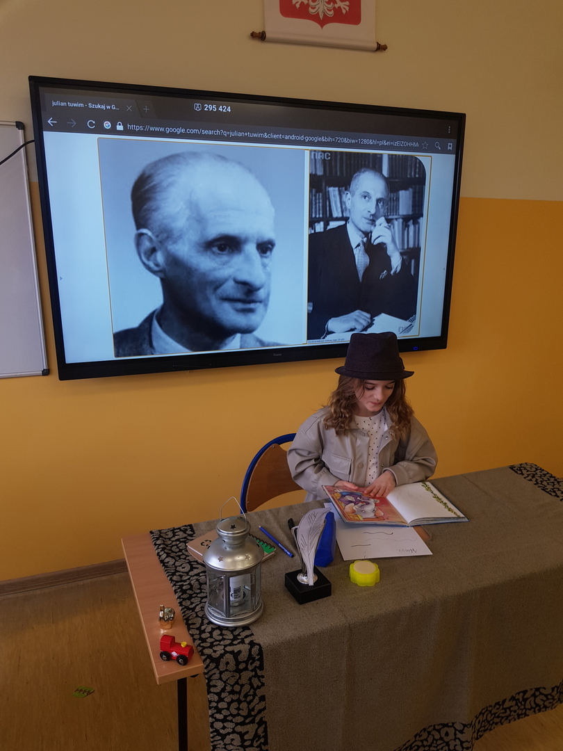 Uczniowie klasy III a przenieśli się w w świat Juliana Tuwima, dzięki czemu  mieli okazję w ciekawy sposób poznać życie I twórczość tego poety. Dzieci  nie tylko recytowały fragmenty jego utworów, ale i  przeprowadziły wywiad z Tuwimem,  który stał się niezwykłą  okazją do zadawania ciekawych pytań dotyczących  życia i historii powstania najciekawszych utworów.