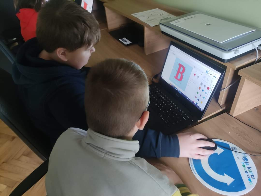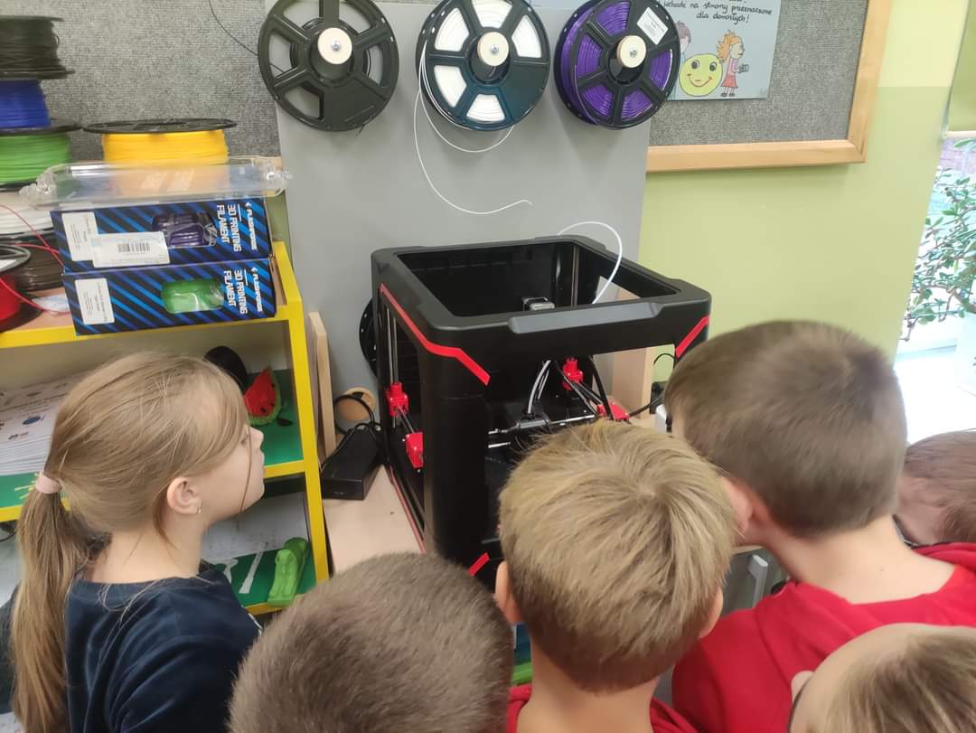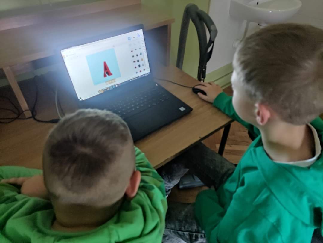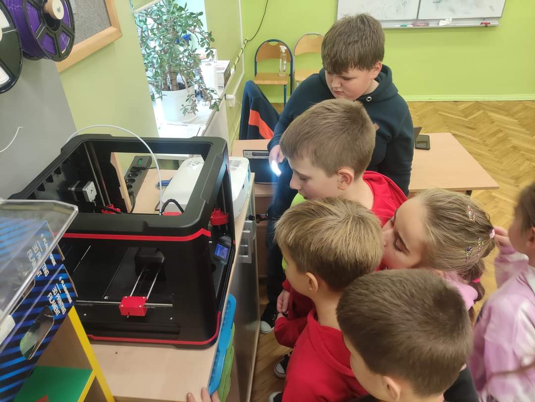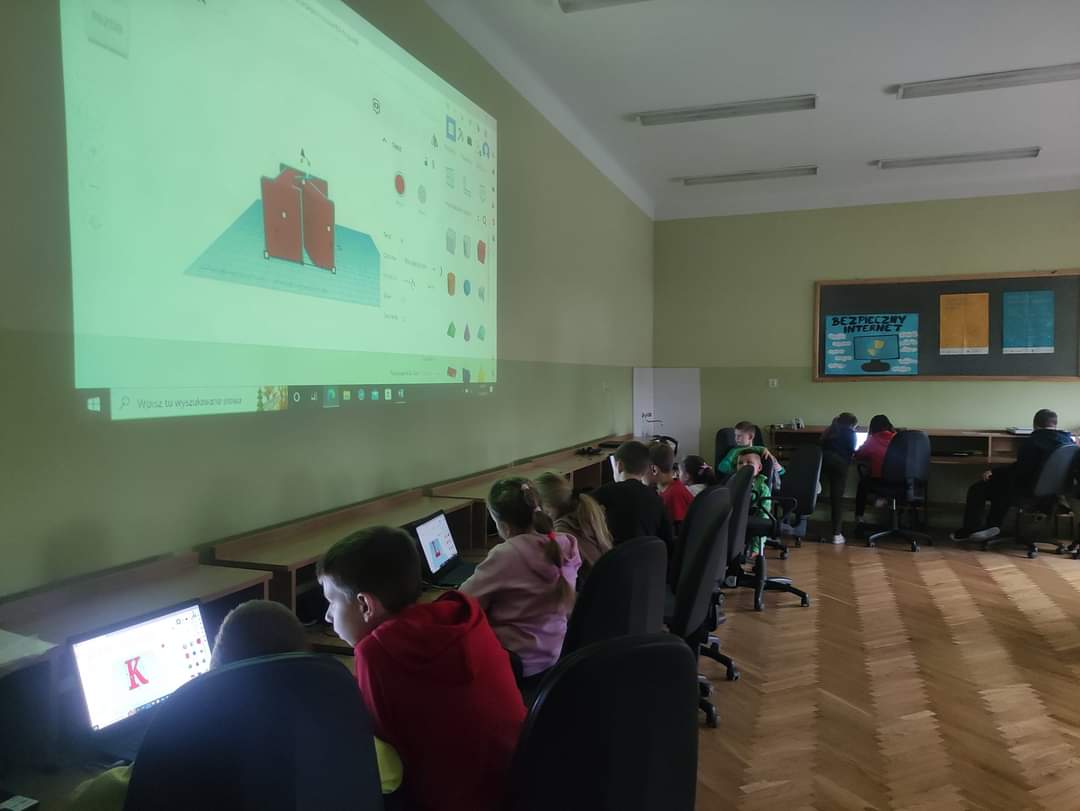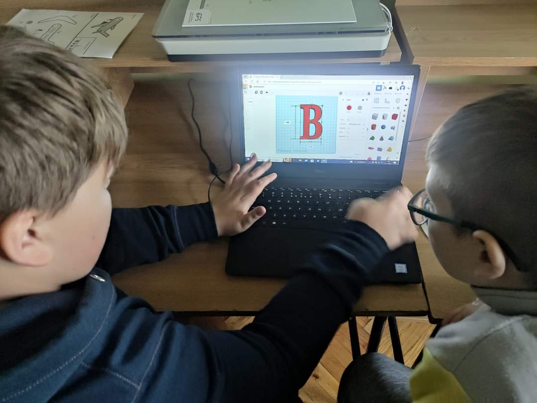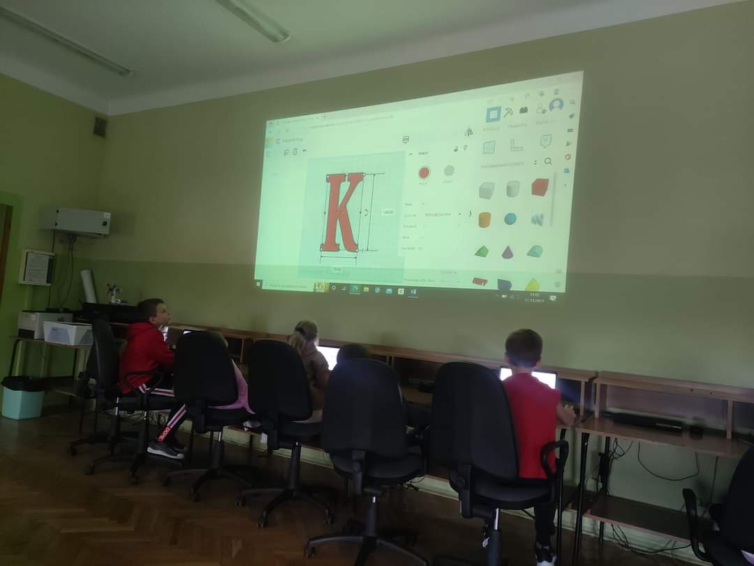 Uczniowie kl. IIb kolejny raz uczestniczyli w zajęciach z projektowania 3D. Tym razem projektując elementy 3D wykorzystywali darmowy program online tinkercad. Zadaniem dzieci było stworzenie hasła „KLASA IIB”. Uczniowie podzieleni na grupy projektowali poszczególne litery- formowali, nadawali dokładny wymiar, kształt, strukturę i kolor. Stworzone elementy zostały wydrukowane na drukarce Banach 3D School zakupionej ze środków pozyskanych w ramach realizacji programu Laboratoria Przyszłości. Podczas zajęć rozwijających zainteresowania uczniowie nabywają umiejętności w zakresie nowych technologii, w szczególności druku 3D.