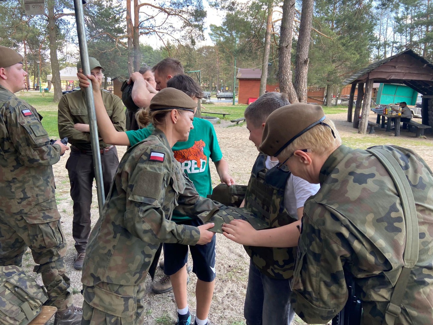 Las ten będzie żywym pomnikiem w hołdzie Janowi Pawłowi II. Po skończonej pracy wszyscy udali się na teren GOWiR, gdzie odbyło się pieczenie kiełbasy oraz spotkanie z żołnierzami 3 Podkarpackiej Brygady Obrony Terytorialnej. Uczniowie mieli okazję spróbować swoich sił w strzelaniu do celu, przymierzyć ekwipunek żołnierza oraz poznać eksponaty przygotowane przez leśników. Serdecznie dziękujemy panu Damianowi Rębacz za zorganizowanie tak pasjonującego spotkania oraz upominki dla uczniów .