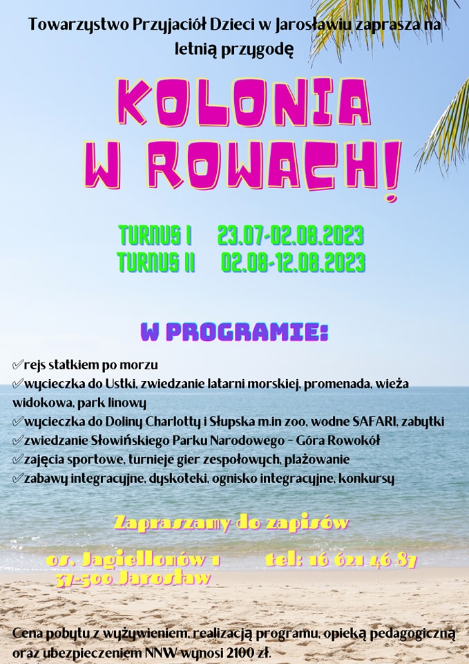 Oferta wypoczynku letniego dla dzieci i młodzieży Towarzystwa Przyjaciół Dzieci Oddział Powiatowy w Jarosławiu.