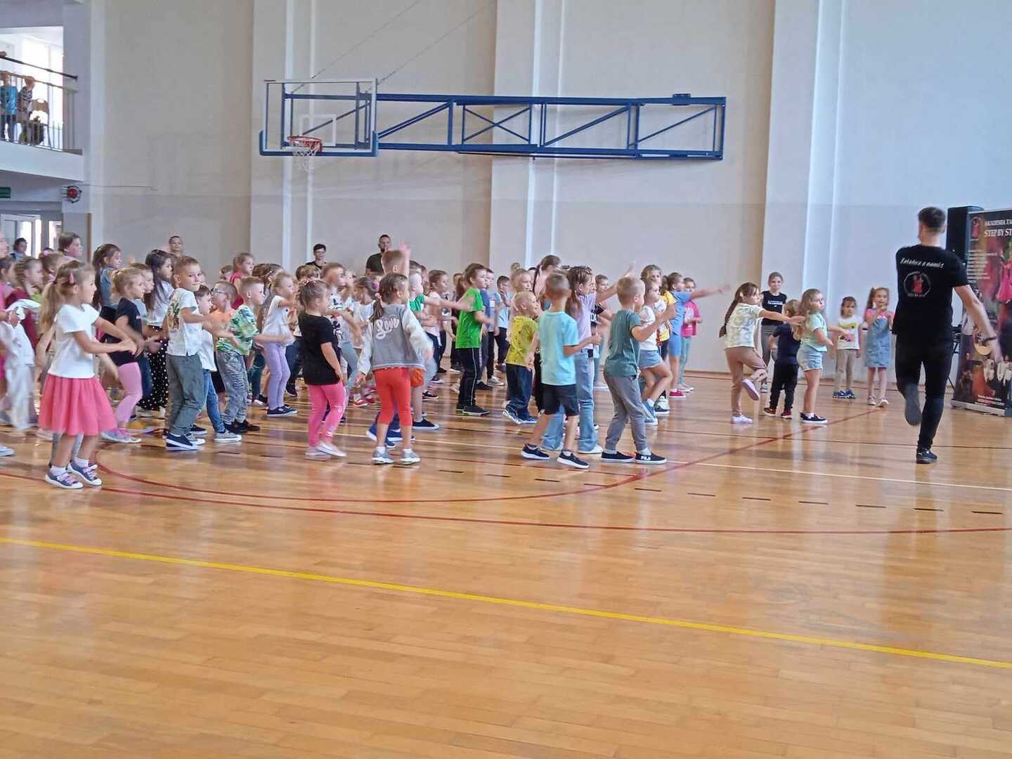 Nasi uczniowie weszli dziś w nowy rok szkolny tanecznym krokiem, dzięki wspaniałemu pokazowi pana Huberta Ciurko oraz tancerzy z Akademi Tańca STEP BY STEP.