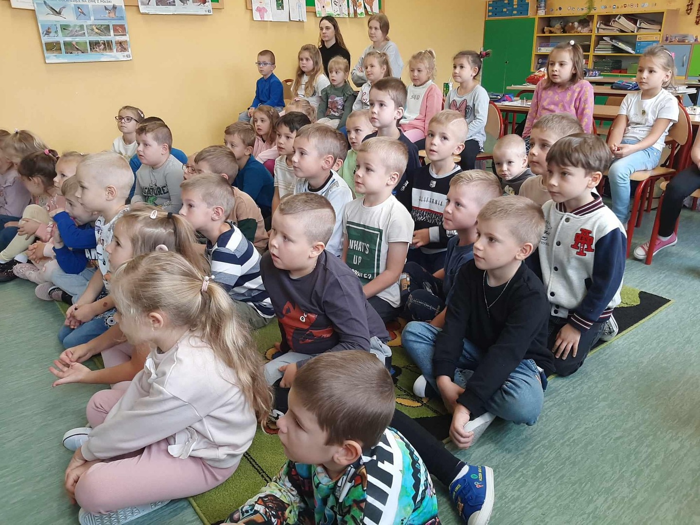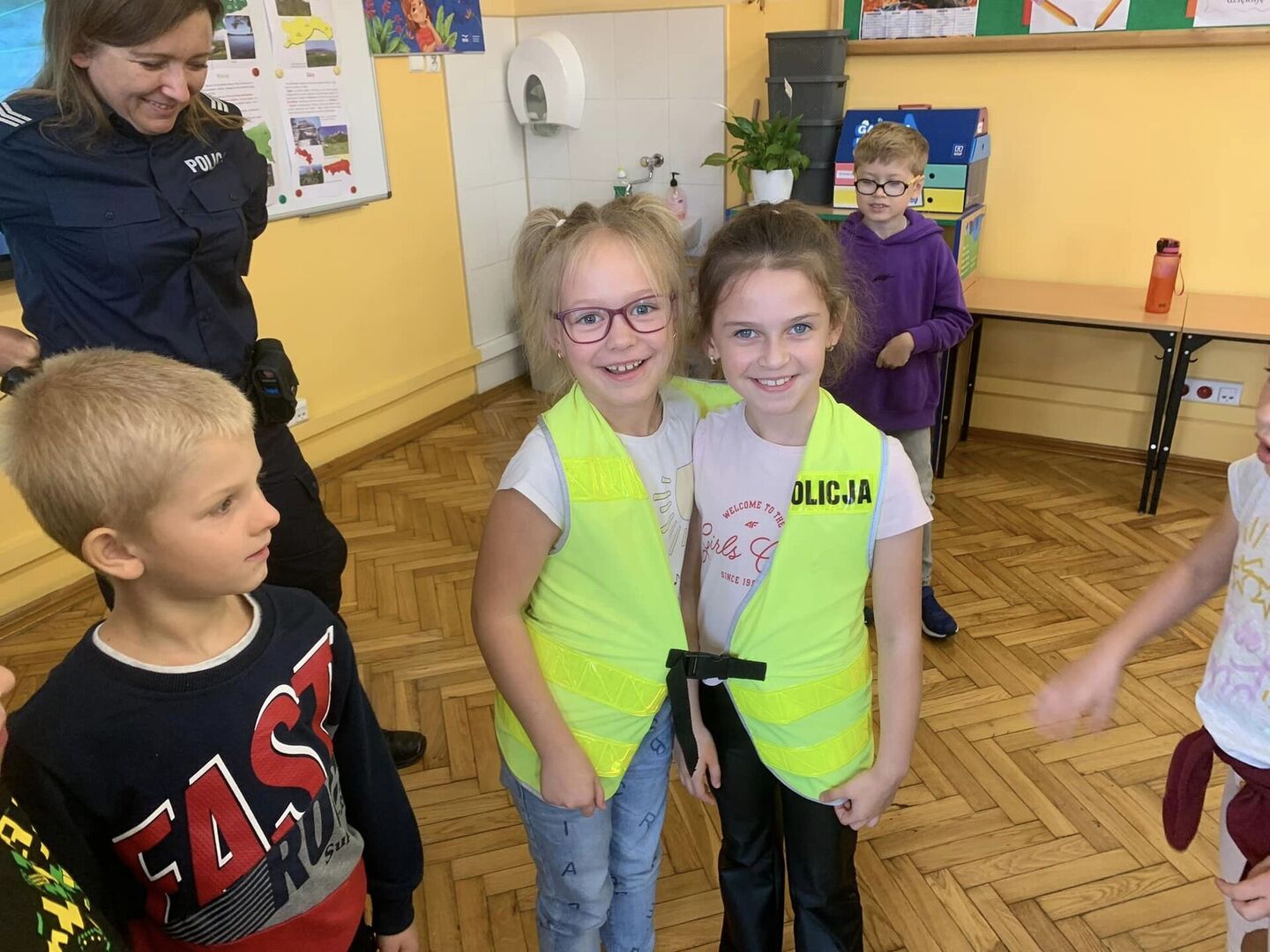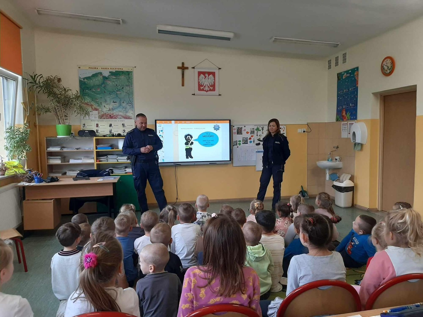 9 października 2023 roku dzieci z oddziałów przedszkolnych oraz klas I-IV wzięły udział w spotkaniu z policjantami z Posterunku Policji w Wiązownicy. Prowadzący spotkanie aspirant sztabowy Daniel Cienki oraz sierżant sztabowy Monika Zawadzka udzielili naszym uczniom wielu cennych wskazówek dotyczących bezpiecznego poruszania się po drodze oraz właściwych zachowań w domu. Policjanci przypomnieli dzieciom numery alarmowe i zwrócili uwagę na niebezpieczeństwa, jakie mogą czyhać na nich w kontaktach z nieznajomymi. Omówione zostały również zasady postępowania w przypadku, gdy na naszej drodze stanie obcy, agresywny pies. Dzieci wykazały się doskonałą wiedzą i bezbłędnie odpowiadały na zadawane przez policjantów pytania. Uczniowie zapoznali się także ze sprzętem policyjnym i bardzo chętnie brali udział w jego prezentacji. Mamy nadzieję, że zdobyta podczas dzisiejszego spotkania wiedza będzie towarzyszyła naszym wychowankom każdego dnia. Bardzo dziękujemy za wspaniałe spotkanie.