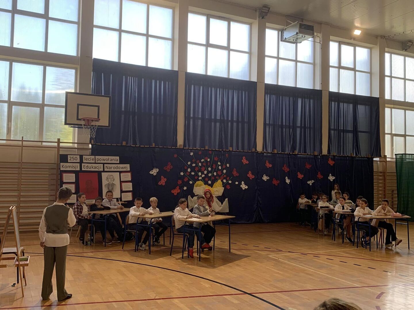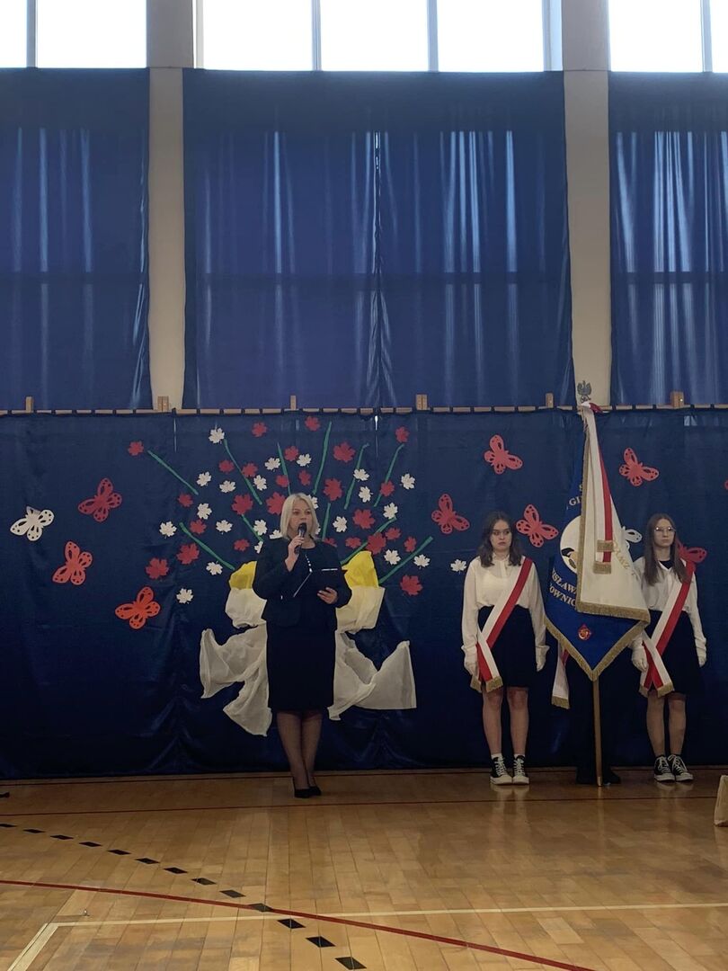 Ważnym punktem obchodów był program artystyczny przygotowany przez uczniów klas IV, którzy pod czujnym okiem wychowawców: Joanny Pokrywki i Andrzeja Marczewskiego wprowadzili nas w świat szkoły z przeszłości, szkoły w czasach obecnych oraz szkoły w przyszłości. Oprawą muzyczną uroczystości zajęła się Pani Małgorzata Tereszko. Dziękujemy za zaangażowanie w przygotowanie uroczystości wszystkim Uczniom, Nauczycielom, Pracownikom Obsługi oraz Rodzicom.