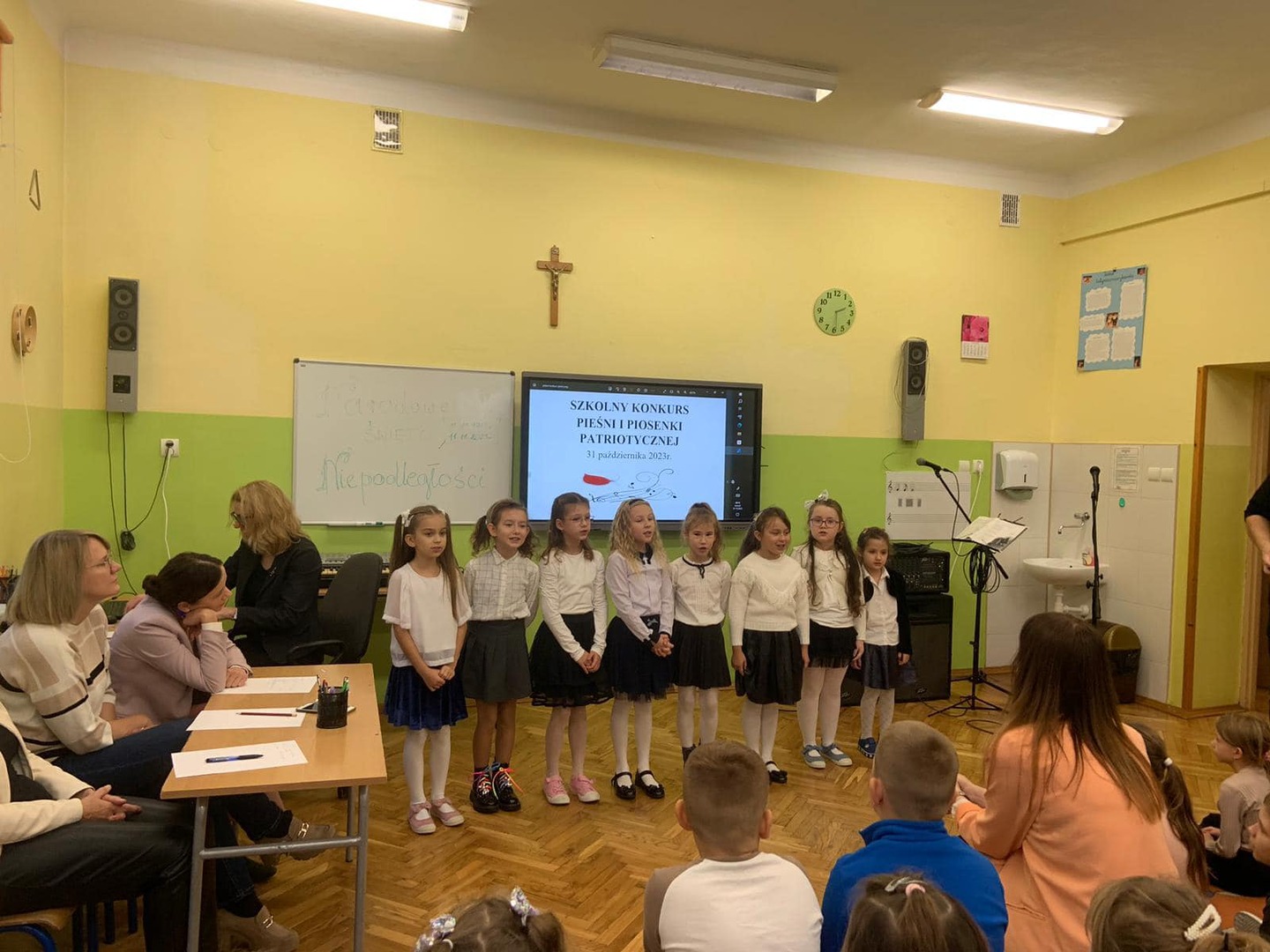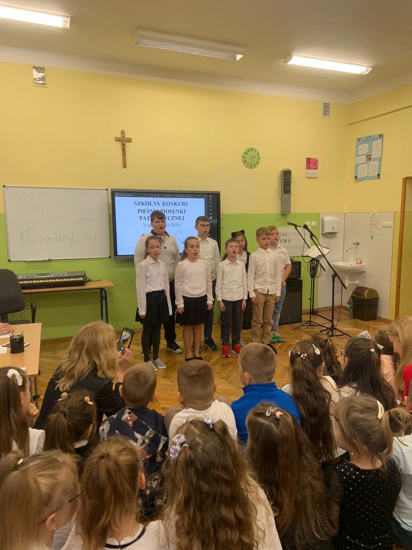 We wtorek, 31.10.2023r. odbył się Szkolny Konkurs Pieśni i Piosenki Patriotycznej. Miał on na celu wyłonić najlepszych wykonawców do Przeglądu Gminnego, który odbędzie się 8 listopada w GCK w Wiązownicy. Komisja zakwalifikowała następujących wykonawców: