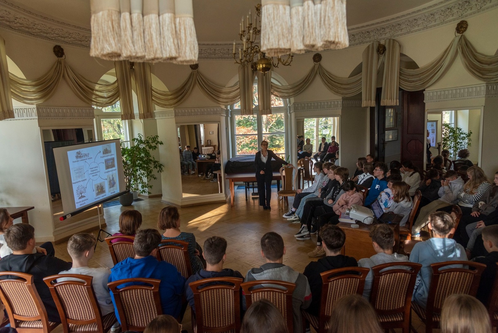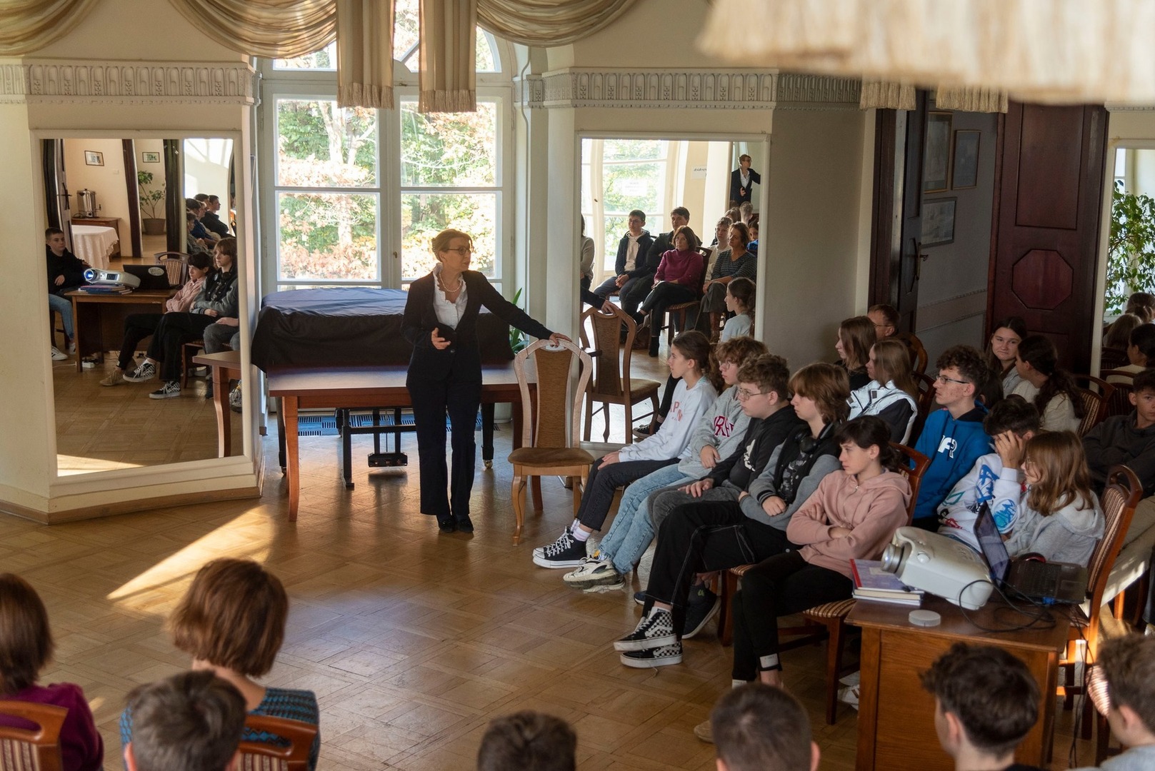 8 listopada 2023r. uczniowie klas siódmych i ósmej Szkoły Podstawowej w Wiązownicy wzięli udział w wycieczce do Pałacu Dzieduszyckich w Zarzeczu. Uczniowie uczestniczyli w lekcji muzealnej prowadzonej przez panią hrabinę Krystynę Dzieduszycką- Rycerską, zapoznali się z historią powstania pałacu i pasjami kolejnych jego właścicieli. Quiz związany z tematyką prelekcji cieszył się dużym zainteresowaniem, a otrzymane upominki sprawiły uczniom radość. Ponadto uczniowie mogli podziwiać różnorodność drzew i krzewów w tamtejszym parku.