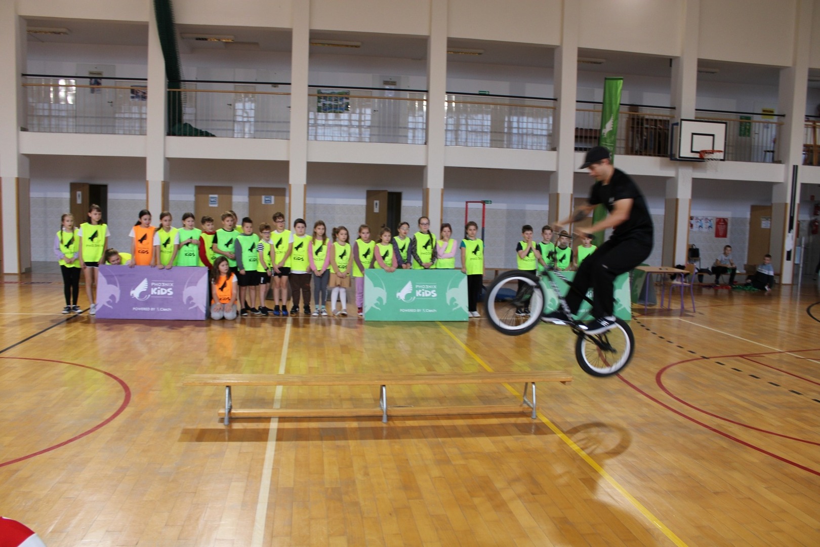 W dniu wczorajszym w naszej szkole odbyły się warsztaty sportowe, które były nagrodą za udział w konkursie video Pho3nix Active School dla najbardziej aktywnych szkół w Polsce. Na uwagę zasługuje fakt, iż warsztaty odbyły się w naszej szkole trzeci raz z rzędu. Ponadto byliśmy jedną z czterech szkół w województwie podkarpackim, wyróżnioną w tym konkursie. W wydarzeniu wzięło udział blisko 200 uczniów. Po wspólnej rozmowie i pokazie sportowym, przygotowanym przez gości specjalnych, uczestnicy wzięli udział w krótkiej rozgrzewce, po czym każdy uczestnik warsztatów mógł sprawdzić swoje predyspozycje sportowe na specjalnie przygotowanych stacjach i zapisać wyniki na otrzymanej wcześniej akredytacji.