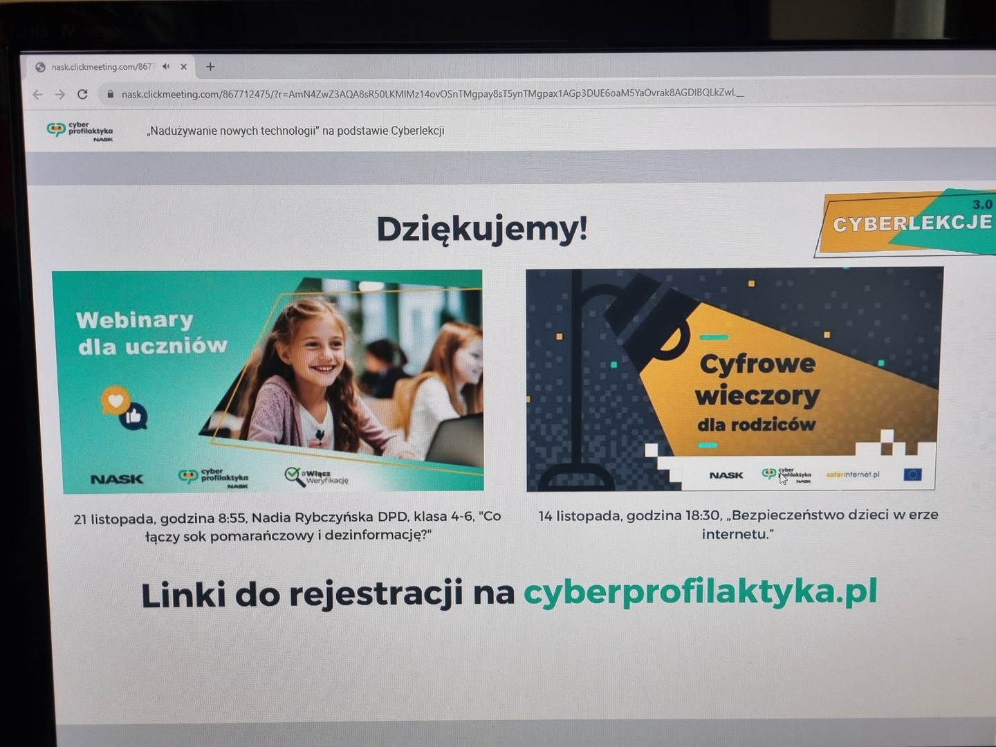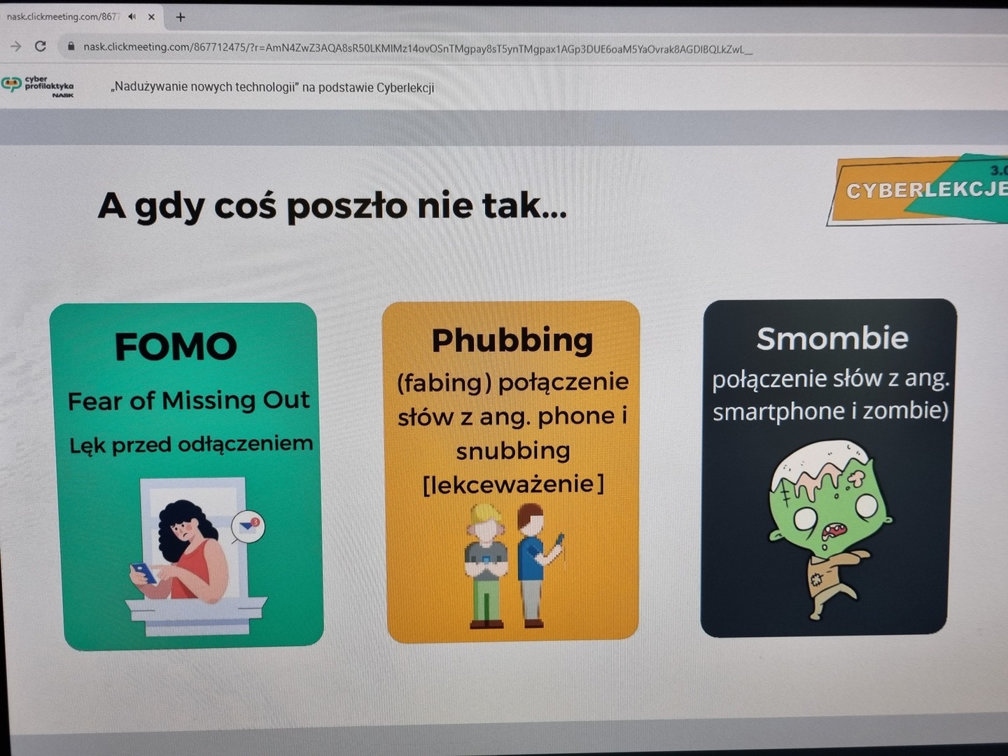 cyberlekcji na temat "Nadużywanie nowych technologii" przeprowadzonej