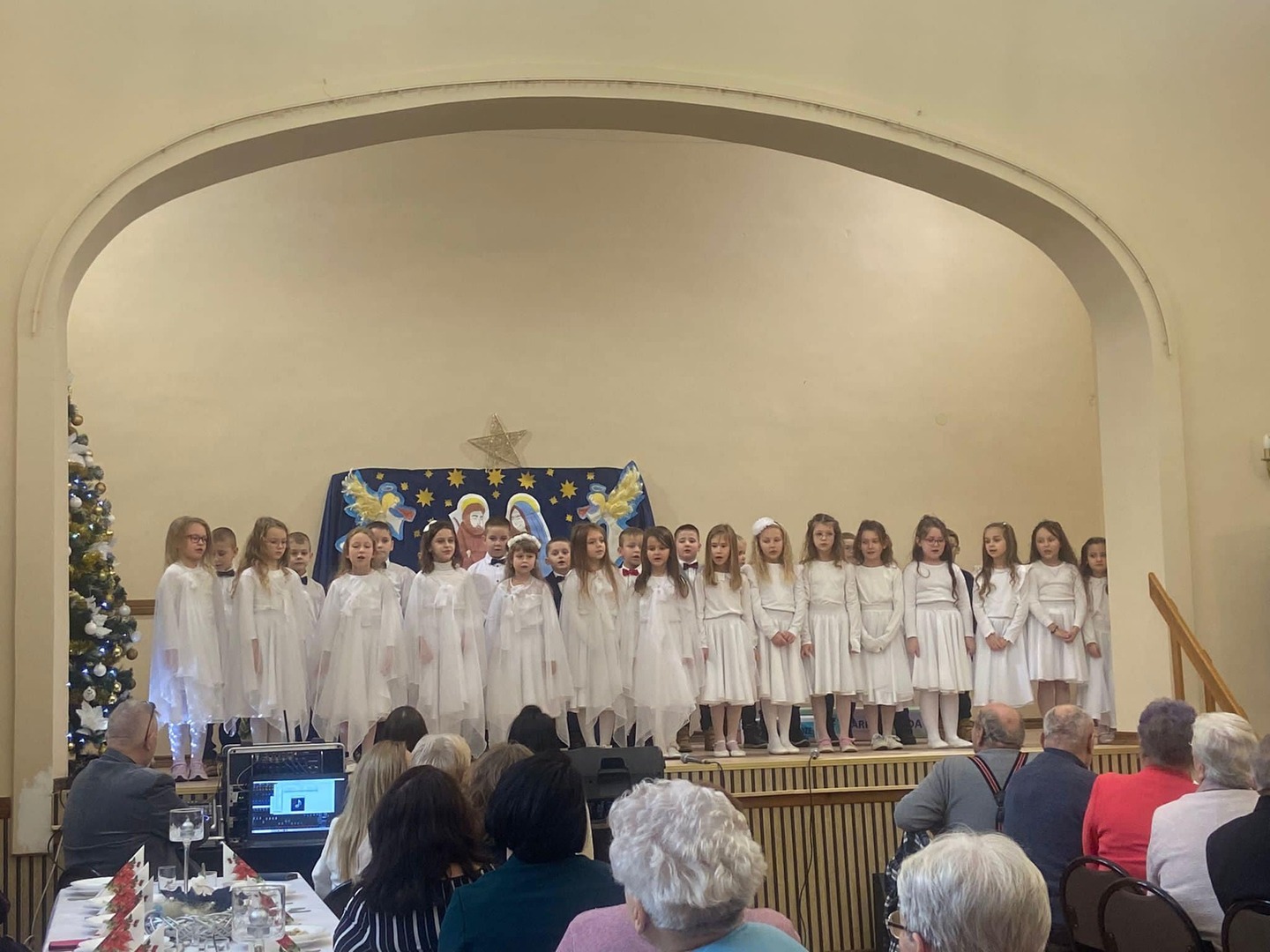 20 grudnia 2023r. uczniowie klas pierwszych naszej szkoły mieli zaszczyt wystąpić na scenie Gminnego Centrum Kultury w Wiązownicy uświetniając Spotkanie Opłatkowe Seniorów z Dziennego Domu Senior + w Radawie oraz członków Klubu Seniora. Występ pierwszoklasistów zyskał uznanie obecnych na sali, co wyrazili gromkimi brawami. Wszystkim Seniorom składamy najserdeczniejsze życzenia zdrowych, pogodnych i radosnych Świąt Bożego Narodzenia !