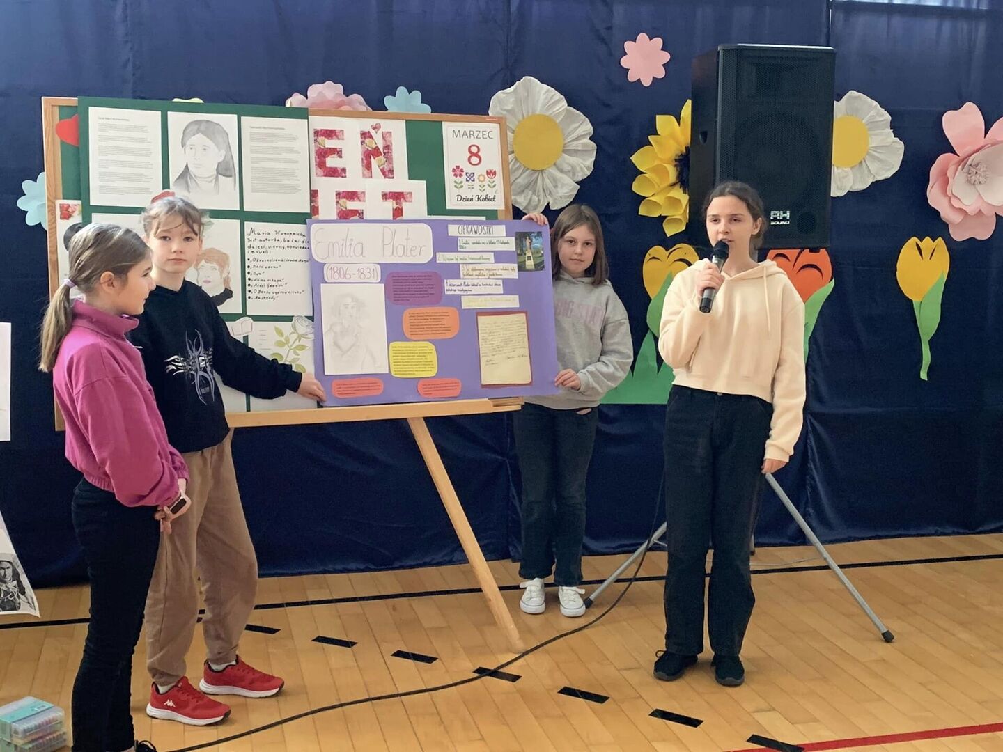 W dniu dzisiejszym wszystkie Kobietki, te małe i te większe obchodziły swoje święto. W naszej szkole damska część społeczności również świętowała Dzień Kobiet. Bardzo dziękujemy za część artystyczną przygotowaną przez uczniów klasy 7b pod czujnym okiem pani wicedyrektor. Obchody tego wyjątkowego dnia uświetniły również występy wokalne uczniów klas I-III. Na zakończenie rozstrzygnięto konkurs plastyczny. Rywalizowali uczniowie wszystkich klas, a ich zadaniem było przygotowanie plakatu przedstawiającego znane polskie kobiety. Po obejrzeniu prezentacji prac, jury wyłoniło zwycięzców: klasę 5b i 6a. Serdecznie gratulujemy wszystkim wykonawcom świetnych prezentacji.