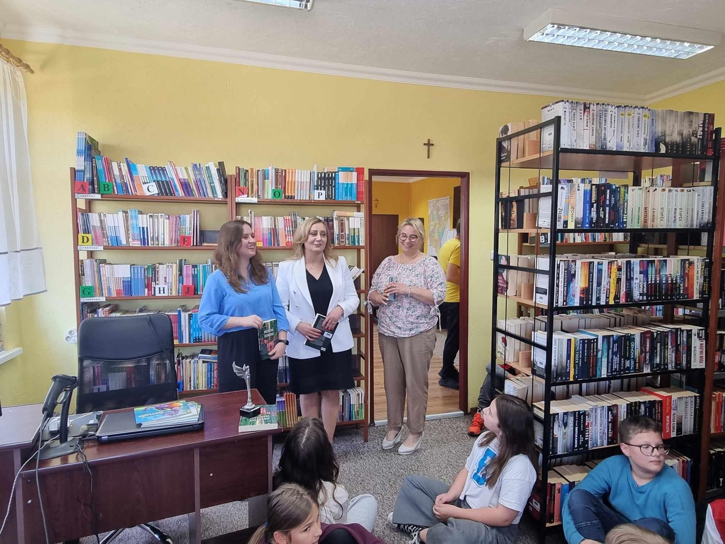 8 maja 2024 roku świętowaliśmy Dzień Bibliotekarza i Bibliotek, który rozpoczął 21. Ogólnopolski Tydzień Bibliotek. Tegoroczna edycja odbywa się pod hasłem „Biblioteka – miejsce na czasie”. I takie właśnie miejsce odkrywali uczniowie klas 4a, 5a i 5b. W Bibliotece Publicznej w Wiązownicy uczestniczyli w interesującym spotkaniu z Panią Gabrielą Rokosz autorką książki pt. „Ostatnie istnienie”. Spotkanie zainaugurowała Dyrektor Gminnego Centrum Kultury – Pani Magdalena Rożek, która zachęcała uczniów do korzystania z bibliotek oraz oferty kulturalnej GCK. Natomiast młoda autorka w niezwykle zajmujący sposób opowiadała o swojej powieści, jej powstawaniu i samym procesie wydawniczym. Nasi uczniowie brali aktywny udział w spotkaniu, zadawali autorce wiele pytań, m.in. jak pogodzić pasję pisania z codziennymi obowiązkami czy studiami.