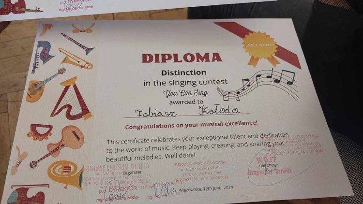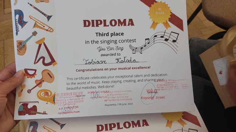 Miło nam poinformować, że uczeń klasy II b Tobiasz Kołoda zajął III miejsce w Gminnym konkursie anglojęzycznym You Can Sing. GRATULUJEMY i życzymy kolejnych sukcesów.